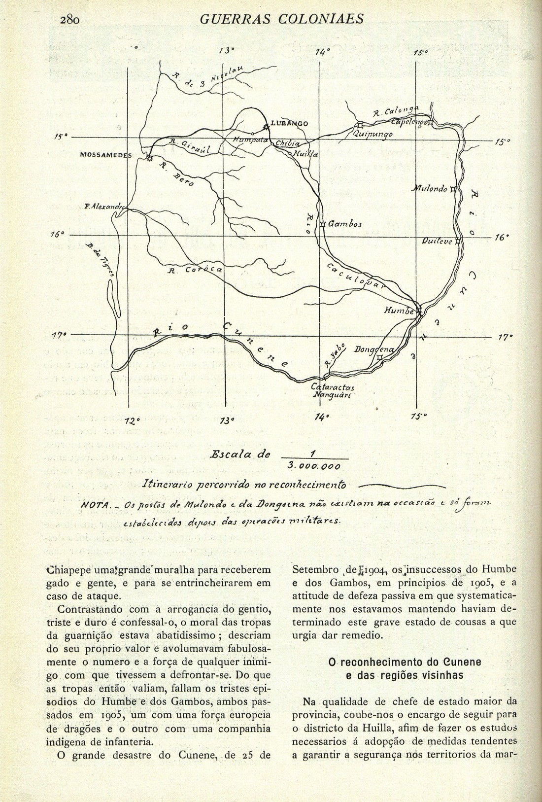 Serões : revista mensal ilustrada N.º 16 (Out. 1906) [em falta os suplementos "Os serões das senhoras" e a Musica dos Serões” ] Capa Publicidade Sumário Contentamento Em Cascaes - O principe Real indo para o banho Guerras coloniaes : as operações militares no Sul de Angola em 1905, por Edurado Augusto Marques A Biblioteca Publica do Porto, por J. Pereira de sampaio (Bruno) Benita : romance Africano, por H. Rider Haggard Seios : poesia , por Accacio Antunes Graphologia : estudo deo caracter pela escrita, por Cruz Andrade Antiguidades Romanas, por A. F. Barata | N.º 16 (Out. 1906) [em falta os suplementos "Os serões das senhoras" e a Musica dos Serões” ] > Guerras coloniaes : as operações militares no Sul de Angola em 1905, por Edurado Augusto Marques > 0280 |