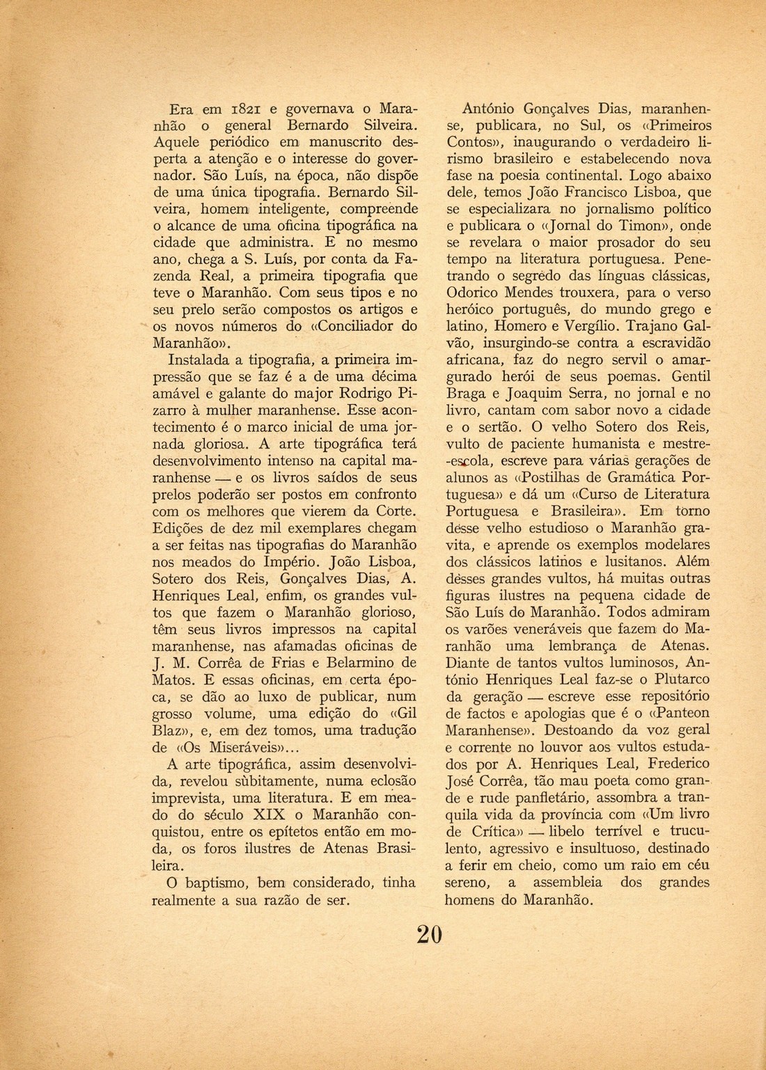 Atlântico : revista luso-brasileira Nova série, N.º 1, 22 de Maio de 1946 capa-sumário verso branca branca rosto verso Camões, por Emílio Moura Um "diagnóstico da enfermidade espiritual do nosso tempo", por António José Brandão, des. por Estrela Faria Presença de Portugal no Maranhão, por Josué Montello Anjos do Aleijadinho, por Alphonsus de Guimaraens Filho Mistérios da literatura popular, por João de Castro Osório, des. por Milton Dacosta Recado para o Arquipélago, por Ribeiro Couto Da autonomia da literatura brasileira, por José Osório de Oliveira A deusa (fantasia), por Mendes de Brito Menino Longe, por Rodrigo de Mello Vária 0111 0112 verso contracapa | Nova série, N.º 1, 22 de Maio de 1946 > Presença de Portugal no Maranhão, por Josué Montello > 0020 |