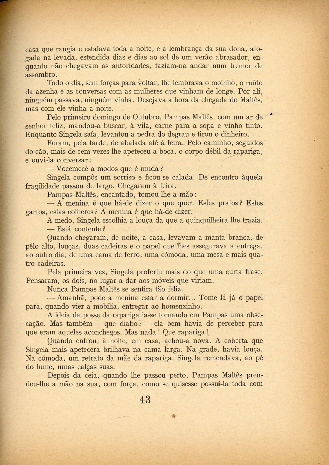 Atlântico : revista luso-brasileira Nova série, N.º 1, 22 de Maio de 1946 capa-sumário verso branca branca rosto verso Camões, por Emílio Moura Um "diagnóstico da enfermidade espiritual do nosso tempo", por António José Brandão, des. por Estrela Faria Presença de Portugal no Maranhão, por Josué Montello Anjos do Aleijadinho, por Alphonsus de Guimaraens Filho Mistérios da literatura popular, por João de Castro Osório, des. por Milton Dacosta Recado para o Arquipélago, por Ribeiro Couto Da autonomia da literatura brasileira, por José Osório de Oliveira A deusa (fantasia), por Mendes de Brito Menino Longe, por Rodrigo de Mello Vária 0111 0112 verso contracapa | Nova série, N.º 1, 22 de Maio de 1946 > Malefício, por Natércia Freire, des. por Magalhães Filho > 0043 |