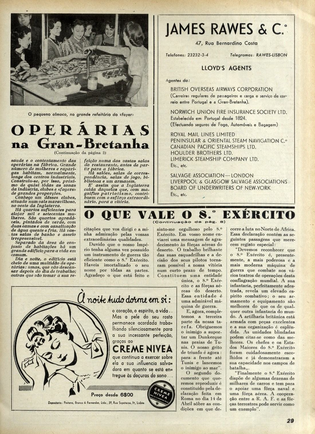 Mundo gráfico A. 3, n.º 62, 30 Abr. 1943 capa Vivem assim as operárias na Gran-Bretanha, por Sidney Horniblow Reflexos do mundo publicidade A aviação dos aliados no Mediterrâneo desempenha um papel dicisivo na preparação das vitórias da Gran-Bretanha Arthur Tedder ; Duas tarefas, por O Observador O general da vitória Livros para crianças A ofensiva contra o Japão Troca de prisioneiros A grandeza da Inglaterra nos mares A vida das aves O poder das Nações Unidas Fantasia de revista O assalto final Vidas em flor Armas triunfantes Figuras e factos Cenas da guerra Página feminina, por Aurora Jardim Ontem e hoje A taça quebrada, por Eugénio Vieira Operárias na Gran-Bretanha [cont.] A campanha de Leste, por Carlos Ferrão publicidade contracapa | A. 3, n.º 62, 30 Abr. 1943 > Operárias na Gran-Bretanha [cont.] > 0029 |