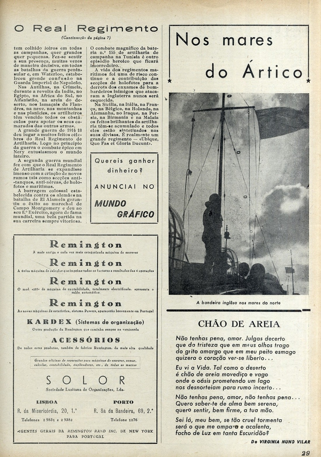 Mundo gráfico A. 6, n.º 131, 30 Mar. 1946 capa As escolas na Serra Leoa Reflexos do mundo Herbert Hoover ; A política externa da Grã-Bretanha, por O Observador A 9.ª Exposição de Fotografia A voz de Londres fala O parque de Versailhes Página feminina, por Aurora Jardim Foto-crime : o desaparecido publicidade contracapa | A. 6, n.º 131, 30 Mar. 1946 > Ontem e hoje, por Augusto Ricardo > 0029 |