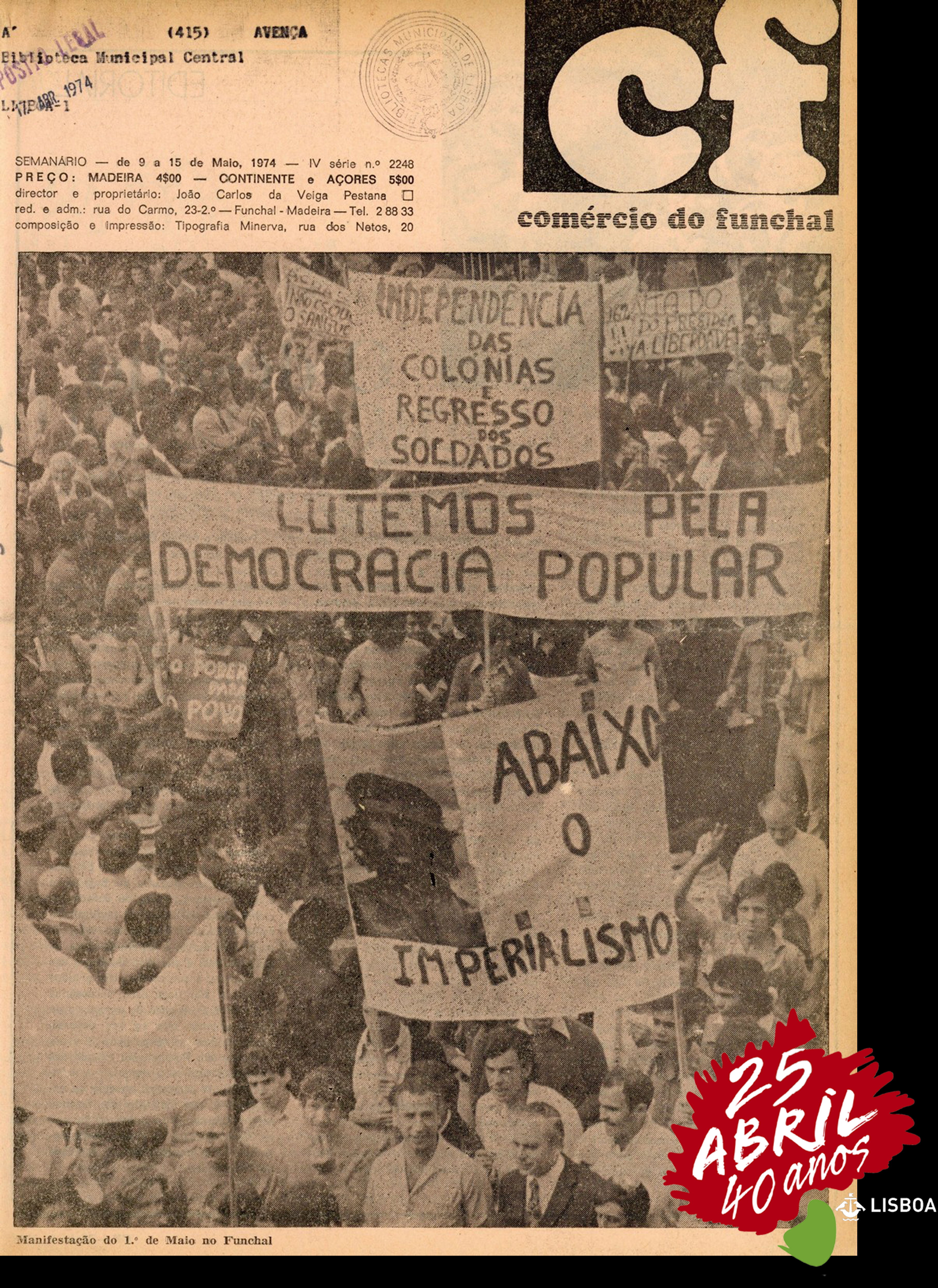 exclusiva na Madeira), com a imagem da manifestação do 1.º de