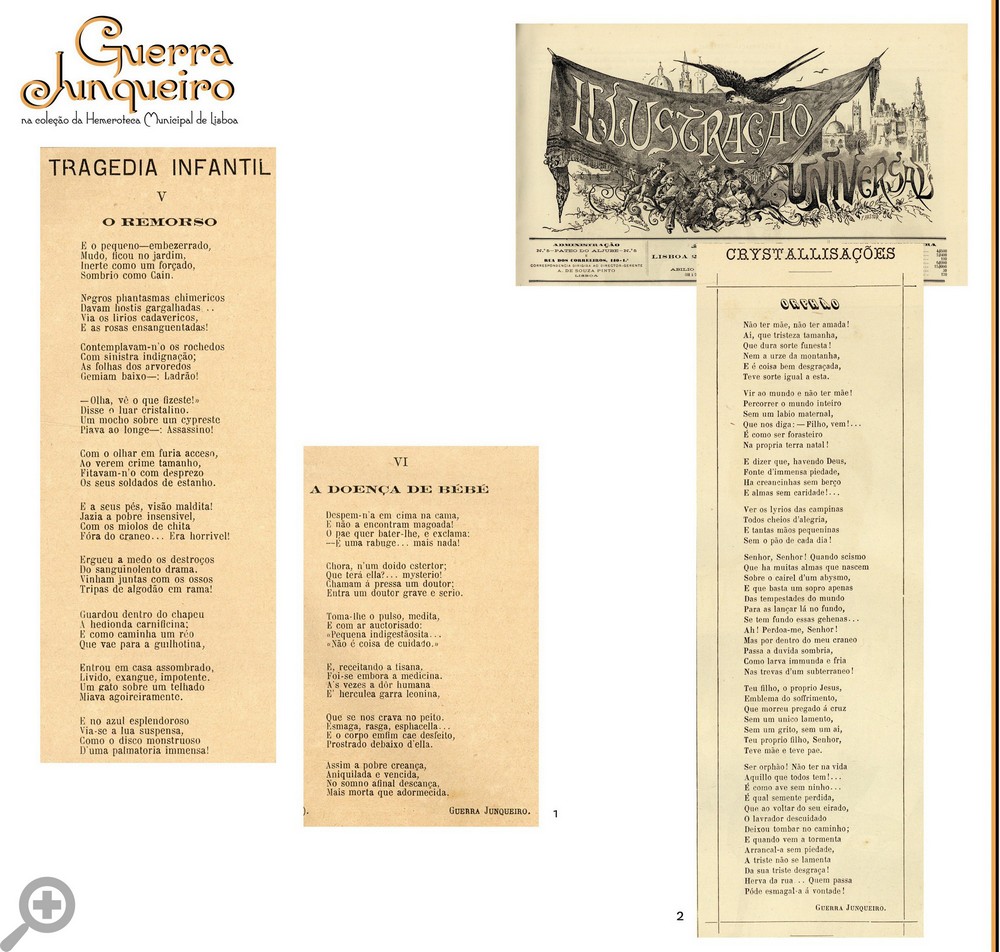 1.”Tragédia Infantil” A Illustração Portuguesa N.º 27, 18 Jan. 1886, p. 2-3 ver aqui N.º 28, 25 Jan. 1886, p. 3 ver aqui N.º 29, 1 Fev. 1886, p. 3 ver aqui N.º 30, 8 Fev. 1886, p. 3 ver aqui N.º 31, 15 Fev. 1886, p. 3 ver aqui 2. “Orphão” A Illustração Universal 16 Ago. 1884, p. 223 ver aqui | |||||