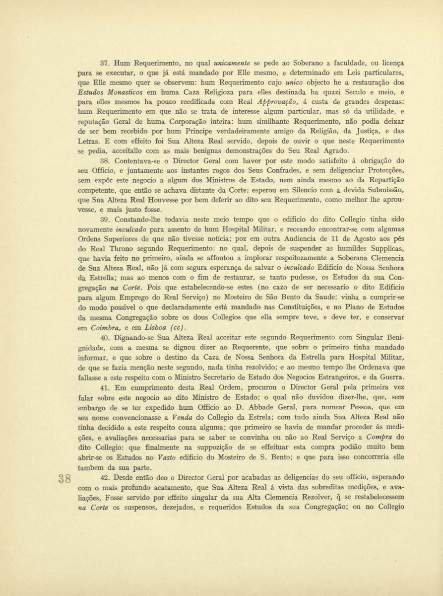 Revista municipal Ano XVI, n.º 65, 2º trimestre de 1955 capa verso 0001 Sumário verso O Presidente da República do Brasil em Lisboa : visita oficial do Exmº Senhor Dr. Café Filho O Colégio Beneditino da Estrela no princípio do século XIX : uma questão monástica, Fr. José de Santa Escolástica Mattoso As Festas de Lisboa de 1955 Cais do Tejo (Lisboa) Prémio Júlio César Machado : A arquitectura da capital : generalidades, por Raul Lino Acontecimentos citadinos Nota etnográfica : os pregões populares das ruas de Lisboa : (aditamento), por Luís Chaves contracapa | Ano XVI, n.º 65, 2º trimestre de 1955 > O Colégio Beneditino da Estrela no princípio do século XIX : uma questão monástica, Fr. José de Santa Escolástica Mattoso > 0038 |