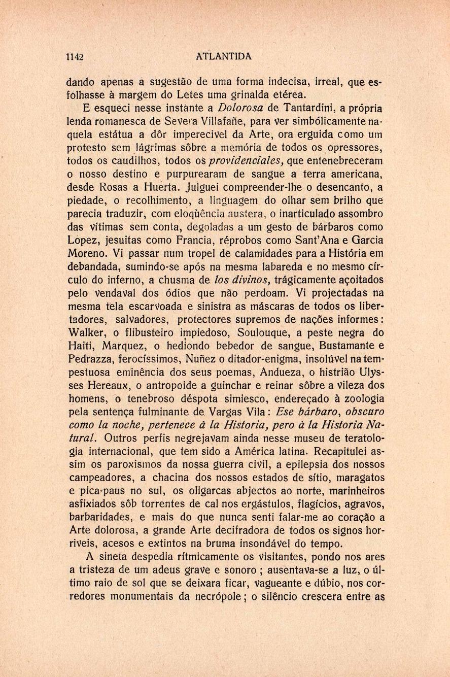 Atlântida : mensário artístico, literário e social para Portugal e Brasil N.º 12, 15 Out. 1916 Capa sumário rosto verso Os demolidores do liberalismo, por Jaime de Magalhães Lima A campanha patriótica de Olavo Bilac Olavo Bilac, desenho de António Carneiro Um trecho dos arredores de Sintra, por Alves de Sá O ferreiro, por Alberto de Oliveira Os Padroeiros, por Hipólito Raposo Ramada da escadaria, por Sousa Pinto Revista do Mês, por João de Além publicidade contracapa | N.º 12, 15 Out. 1916 > Em Recoleta, por Celso Vieira > 1142 |