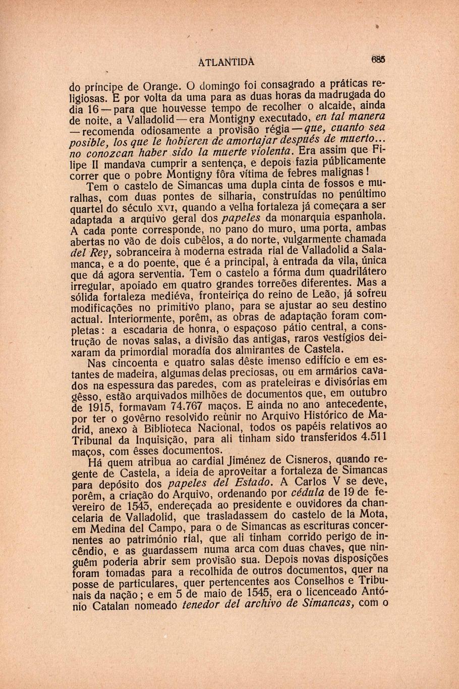 Atlântida : mensário artístico, literário e social para Portugal e Brasil N.º 20, 15 Jun. 1917 Capa sumário rosto verso Aspectos morais da guerra europeia, por Henrique Lopes Mendonça A confederação Luso-Brasileira, por J. de B. O Arquivo Geral de Simancas, por J. M. de Queirós Veloso Revista do mês Revista da Faculdade de Direito de Lisboa A nova sede da "Atlantida" : uma exposição de rendas de D. Maria Augusta Bordalo Pinheiro publicidade contracapa | N.º 20, 15 Jun. 1917 > O Arquivo Geral de Simancas, por J. M. de Queirós Veloso > 0685 |