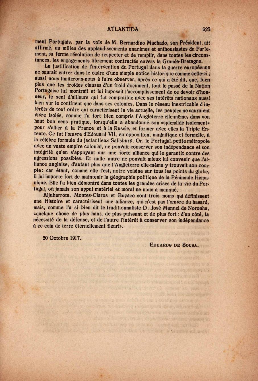 Atlântida : mensário artístico, literário e social para Portugal e Brasil N.º 25, 15 Nov. 1917 Capa sumário rosto verso Dr. Bernardido Machado : actual presidente da República Portuguesa C'est le peuple portugais qui fait son armée : paroles de Mr. le Ministre de la Guerra A marinha de guerra portuguesa e a Alemanha : entrevista com o Sr. Leote do Rego, comandante da divisão naval La marine de guerre portugaise et l'Allemagne : entrevue avec M. Leote do Rego, commandant de la division navale Augusto Soares : ministro dos Negócios Estrangeiros A Instrução Pública em Portugal L'instruction publique en Portugal Portugal heróico, por Henrique Lopes Mendonça Le Portugal heroïque, por Henrique Lopes de Mendonça Vindimando=La vendange, desenho de Roque Gameiro Dr. Manuel de Arriaga : Primeiro Presidente da República Portuguesa Les lettres au Portugal, par Manuel de Sousa Pinto Dr. Teófilo Braga : segundo Presidente da República Portuguesa, por Columbano O exército português na grande guerra : Primeiro encontro=La première rencontre, desenho de Alberto de Sousa A mulher portuguesa, por Amália de Queirós A caricatura portuguesa e a guerra = La caricature portugaise et la guerre, desenho de Manuel Gustavo Onde devemos passar as noites? : a temporada de inverno nos teatros de Lisboa publicidade contracapa | N.º 25, 15 Nov. 1917 > L'Alliance Anglaise, par Eduardo Sousa > 0223 |
