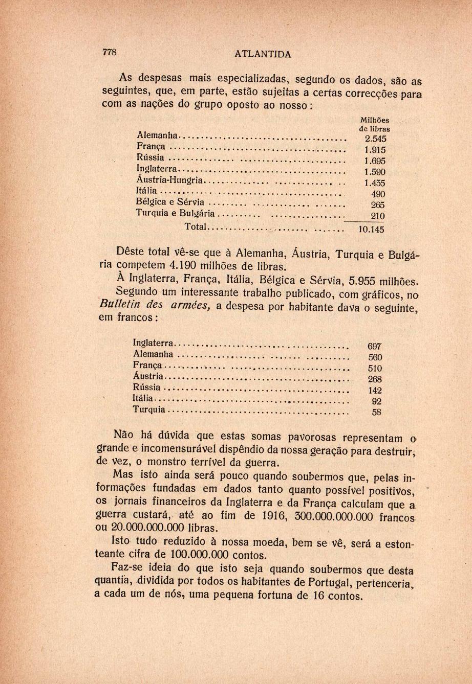 Atlântida : mensário artístico, literário e social para Portugal e Brasil N.º 8, 15 Jun. 1916 capa sumário rosto verso O novo embaixador do Brasil : Dr. Gastão da Cunha Os progressos da educação secundária em Portugal, por Agostinho de Campos Santo António de Lisboa, por Aquilino Ribeiro Rapariga de Valongo, por Sousa Pinto Porto de Pozzuoli à tarde, por Navarro da Costa A voz dos Magos, por Júlio Brandão A guerra e a mobilização financeira, por José de Macedo A revista do mês O embaixador do Brasil, Dr. Gastão da Cunha Crónica musical, por Humberto Avelar Economia & finanças Exposição de Belas Artes: Exposição Augusto Pina sumário contracapa | N.º 8, 15 Jun. 1916 > A guerra e a mobilização financeira, por José de Macedo > 0778 |