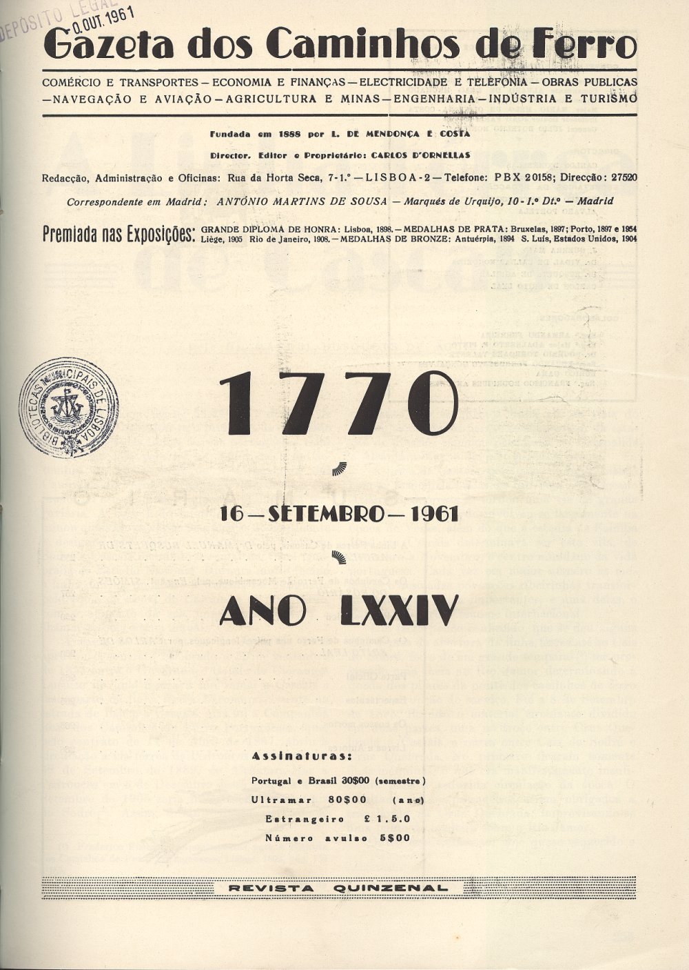 Gazeta dos Caminhos de Ferro N.º 1770