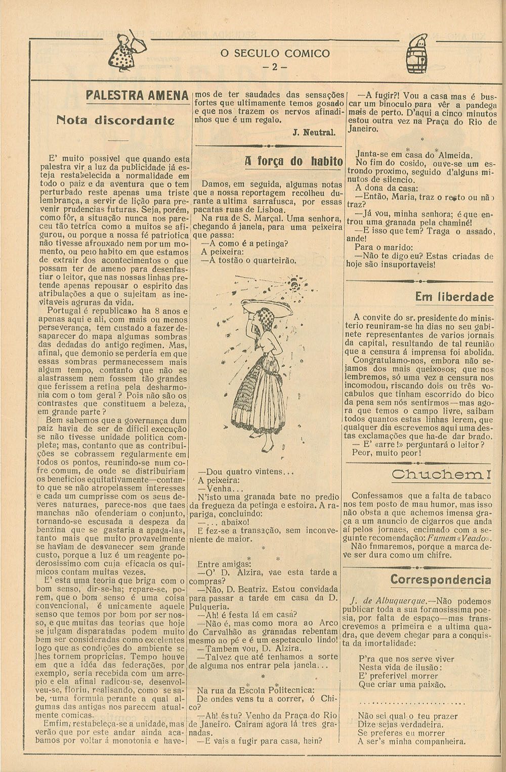 Ilustração Portuguesa | 2.ª série, n.º 677, 10 de Fevereiro de 1919 > O Século Cómico : suplemento humorístico de O Século, n.º 1104 [erro de numeração que se mantém até final do semestre], 10 de Fevereiro de 1919 > 0002 |