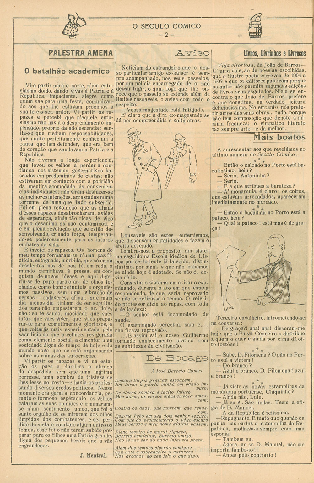 Ilustração Portuguesa | 2.ª série, n.º 678, 17 de Fevereiro de 1919 > O Século Cómico : suplemento humorístico de O Século, n.º 1105, 17 de Fevereiro de 1919 > 0002 |