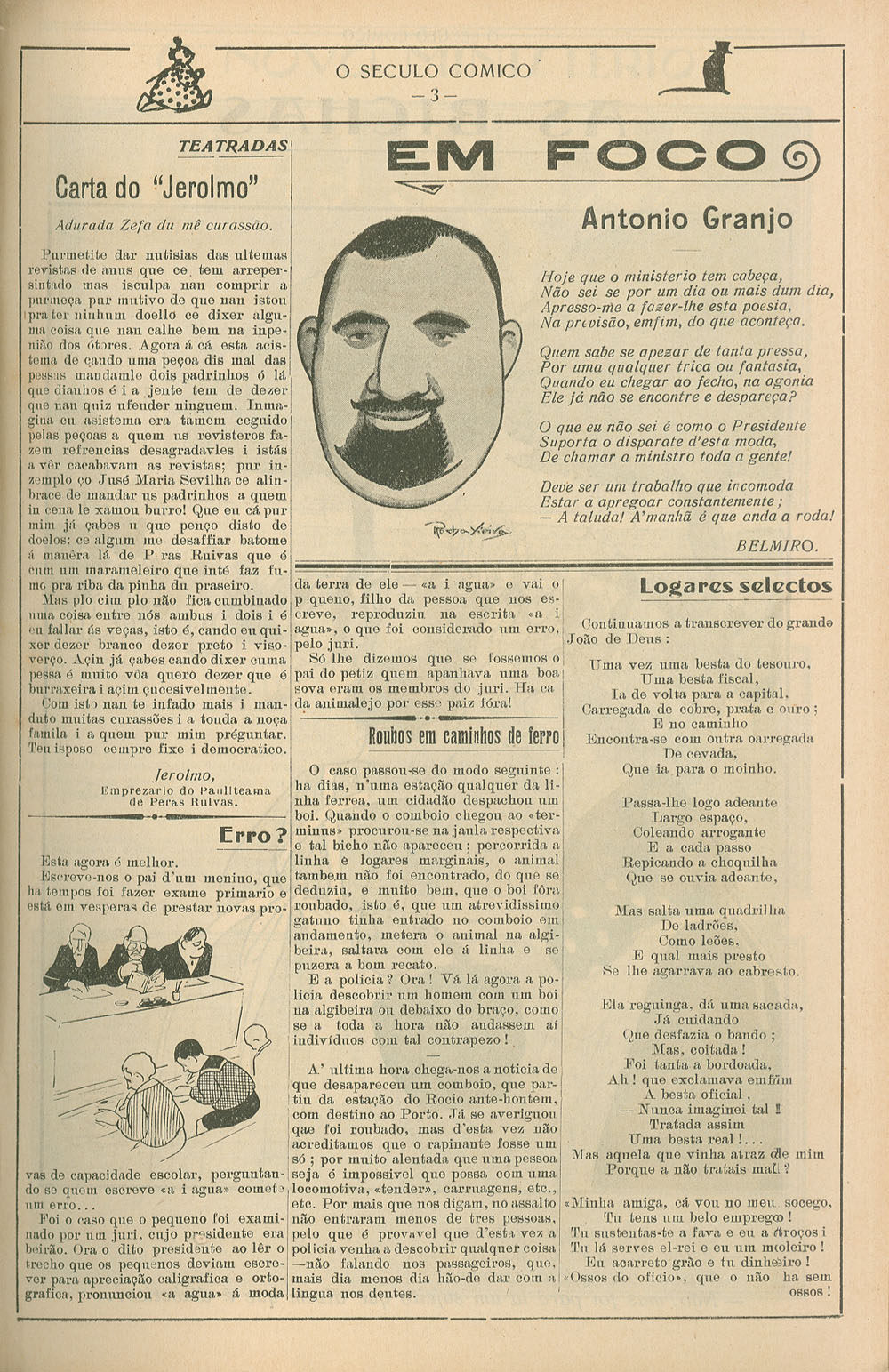 Ilustração Portuguesa 2.ª série, n.º 754, 2 de Agosto de 1920 | 2.ª série, n.º 754, 2 de Agosto de 1920 > O Século Cómico : suplemento humorístico de O Século, n.º 1180, 2 de Agosto de 1920 > 0003 |