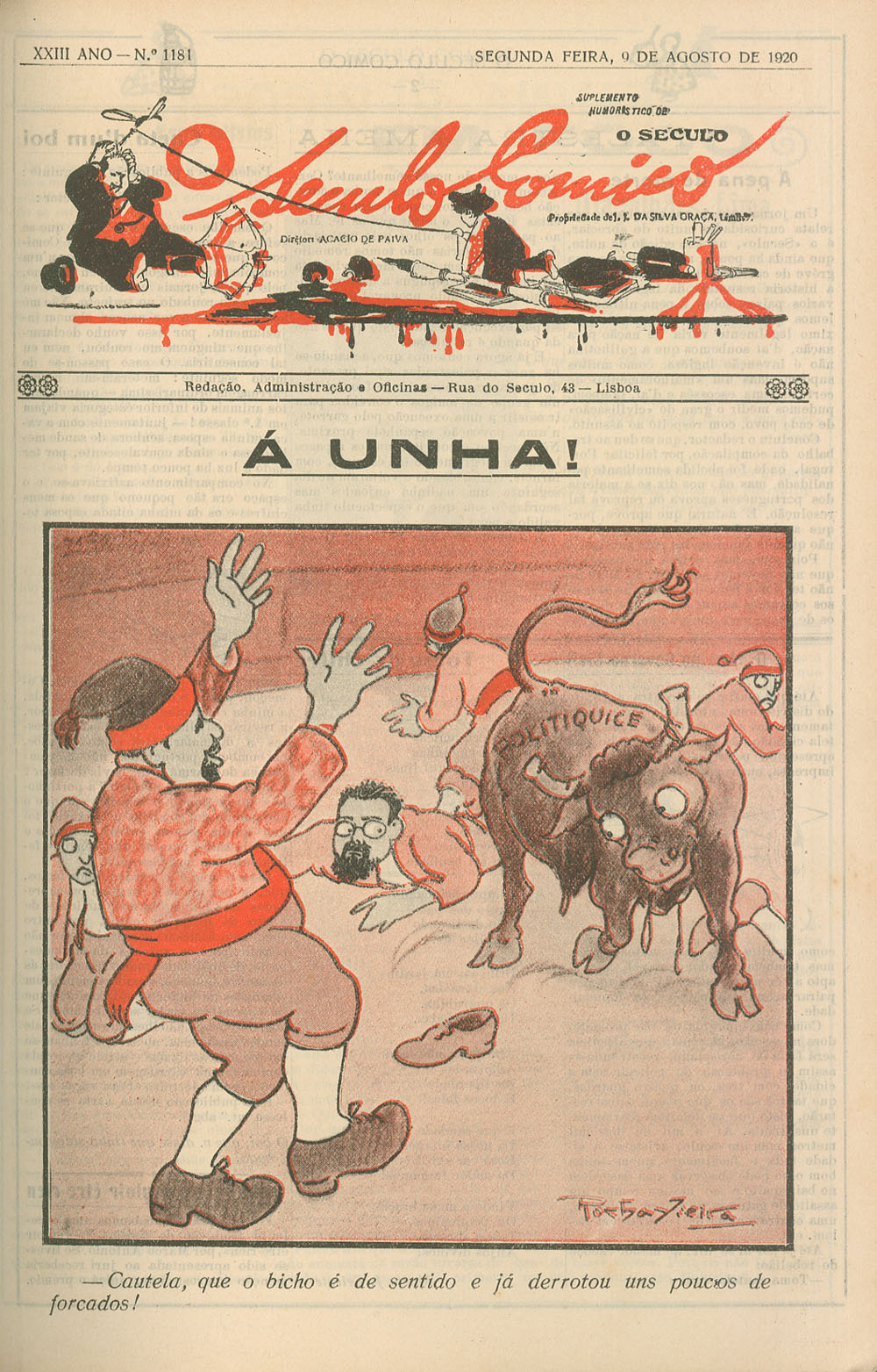 Ilustração Portuguesa | 2.ª série, n.º 755, 9 de Agosto de 1920 > O Século Cómico : suplemento humorístico de O Século, n.º 1181, 9 de Agosto de 1920 > 0001 |