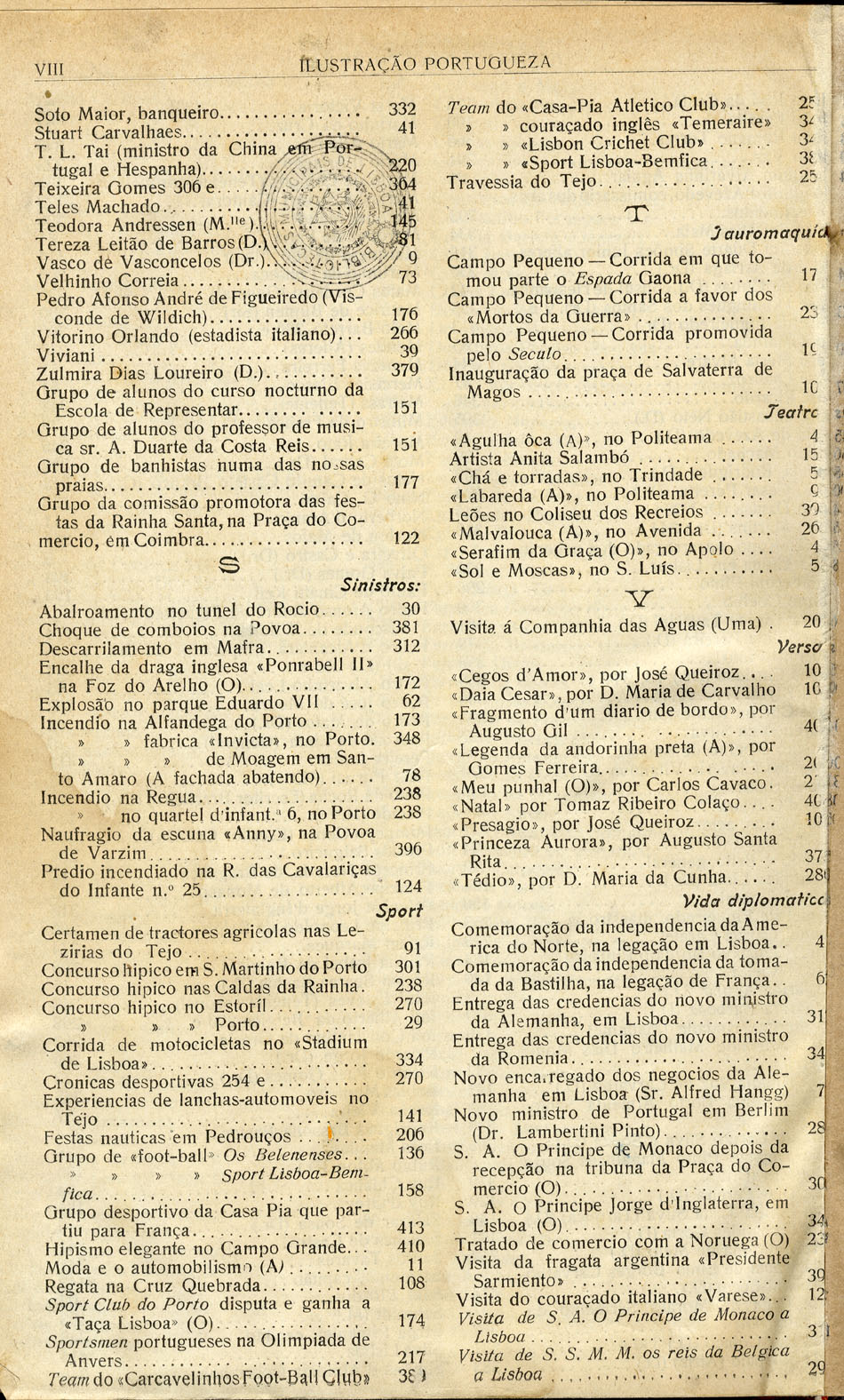 Índices, 1920 > Índice do 2.º Semestre > VIII