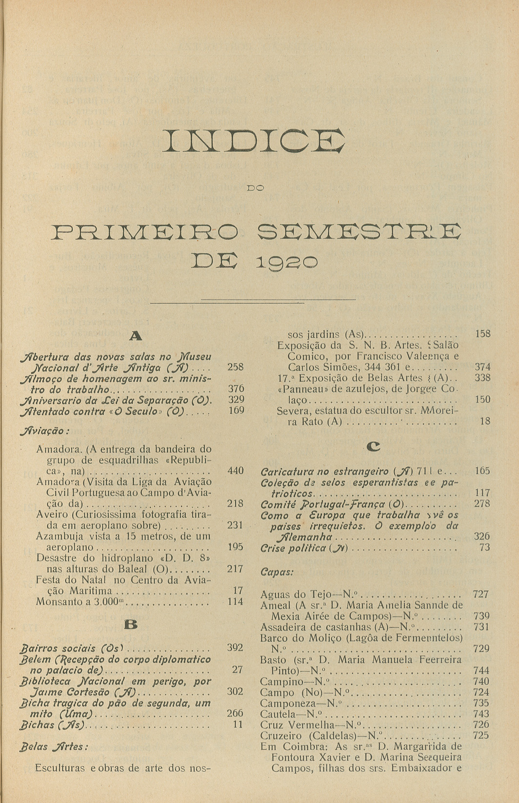 Índices, 1920 > Índice do 1.º Semestre > I