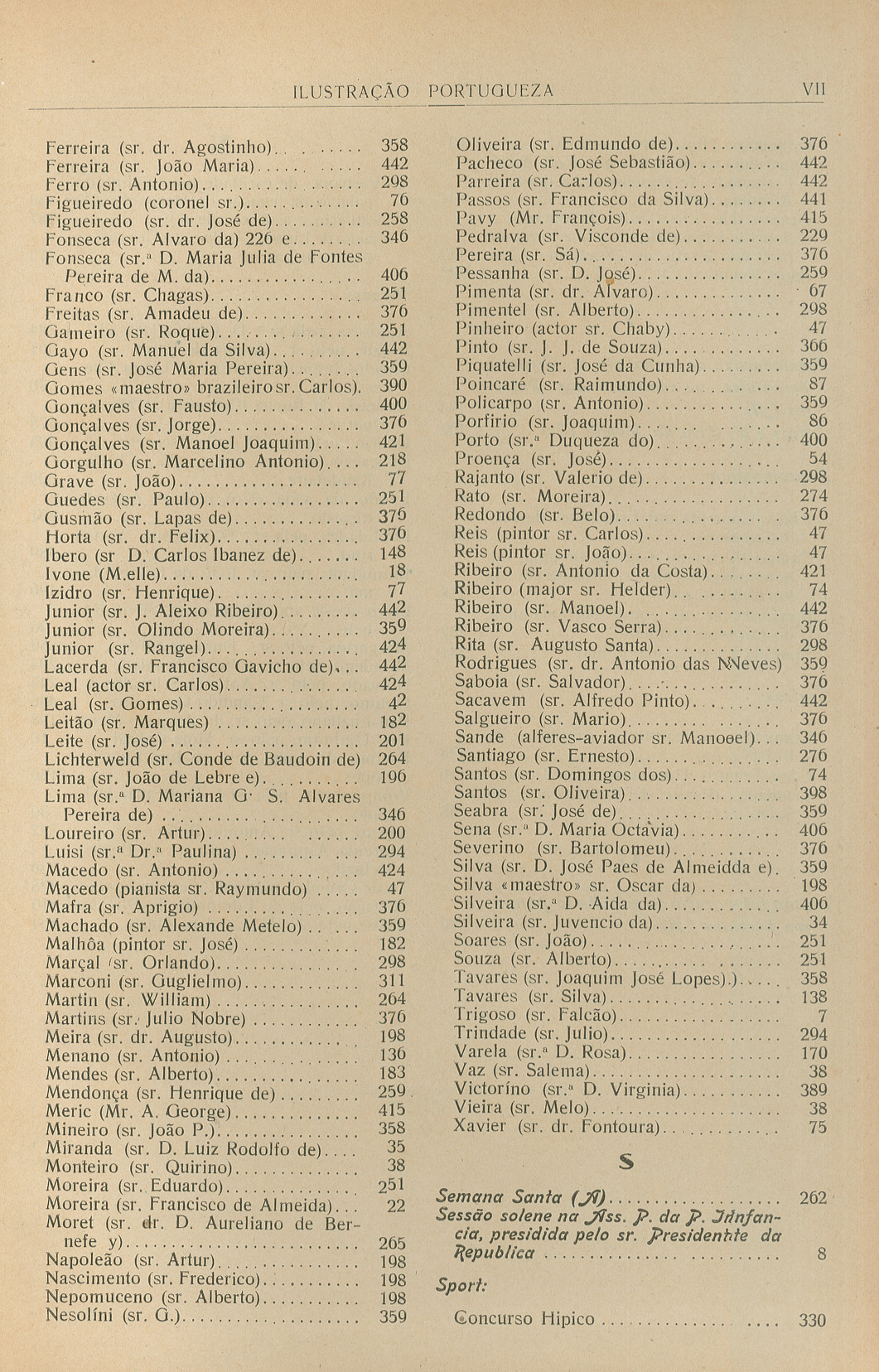 Índices, 1920 > Índice do 1.º Semestre > VII