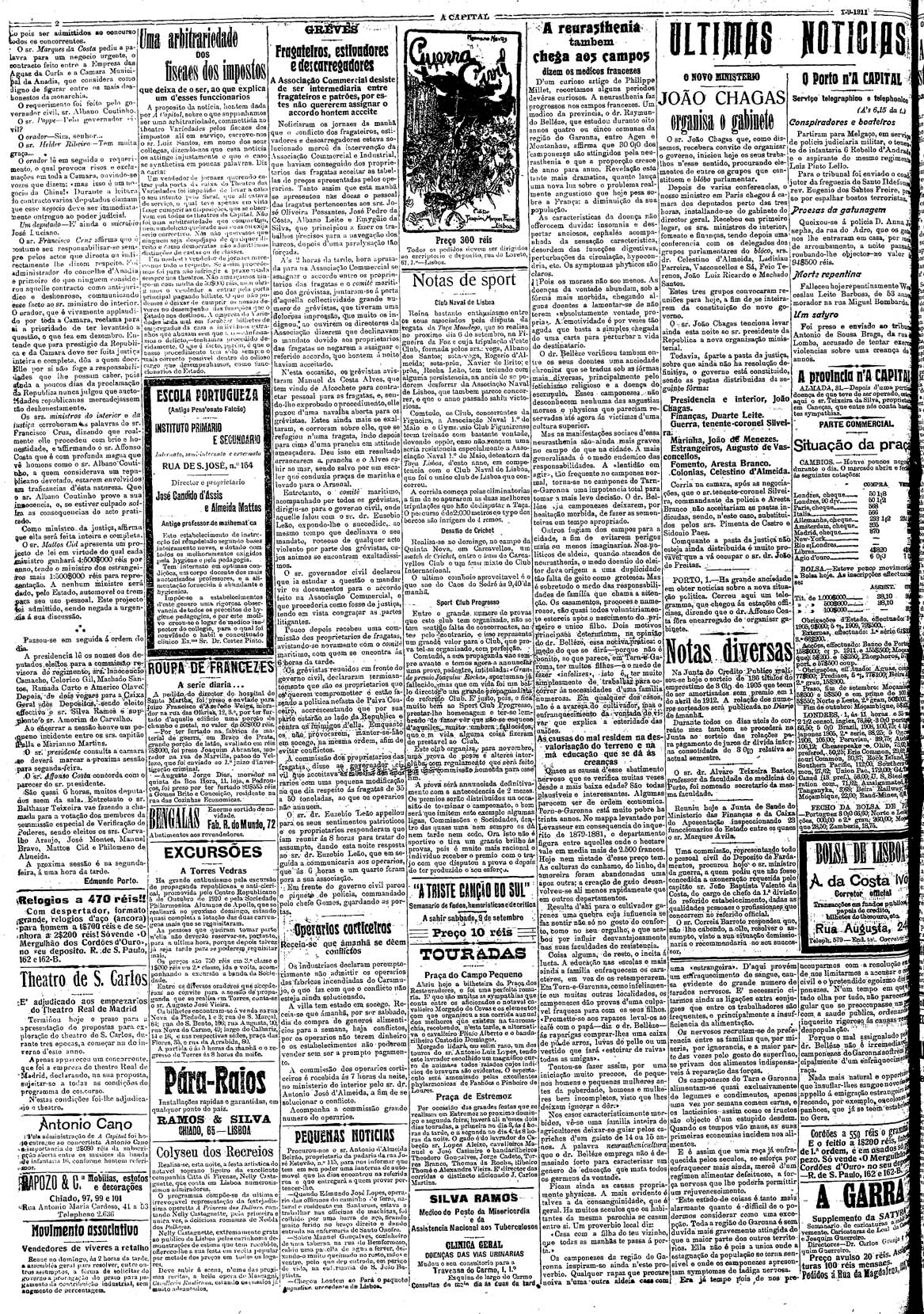 A Capital : diario republicano da noite Setembro de 1911, n.º 402 a n.º 427 | Setembro de 1911, n.º 402 a n.º 427 > N.º 402 (1 Set.) > 0002 |