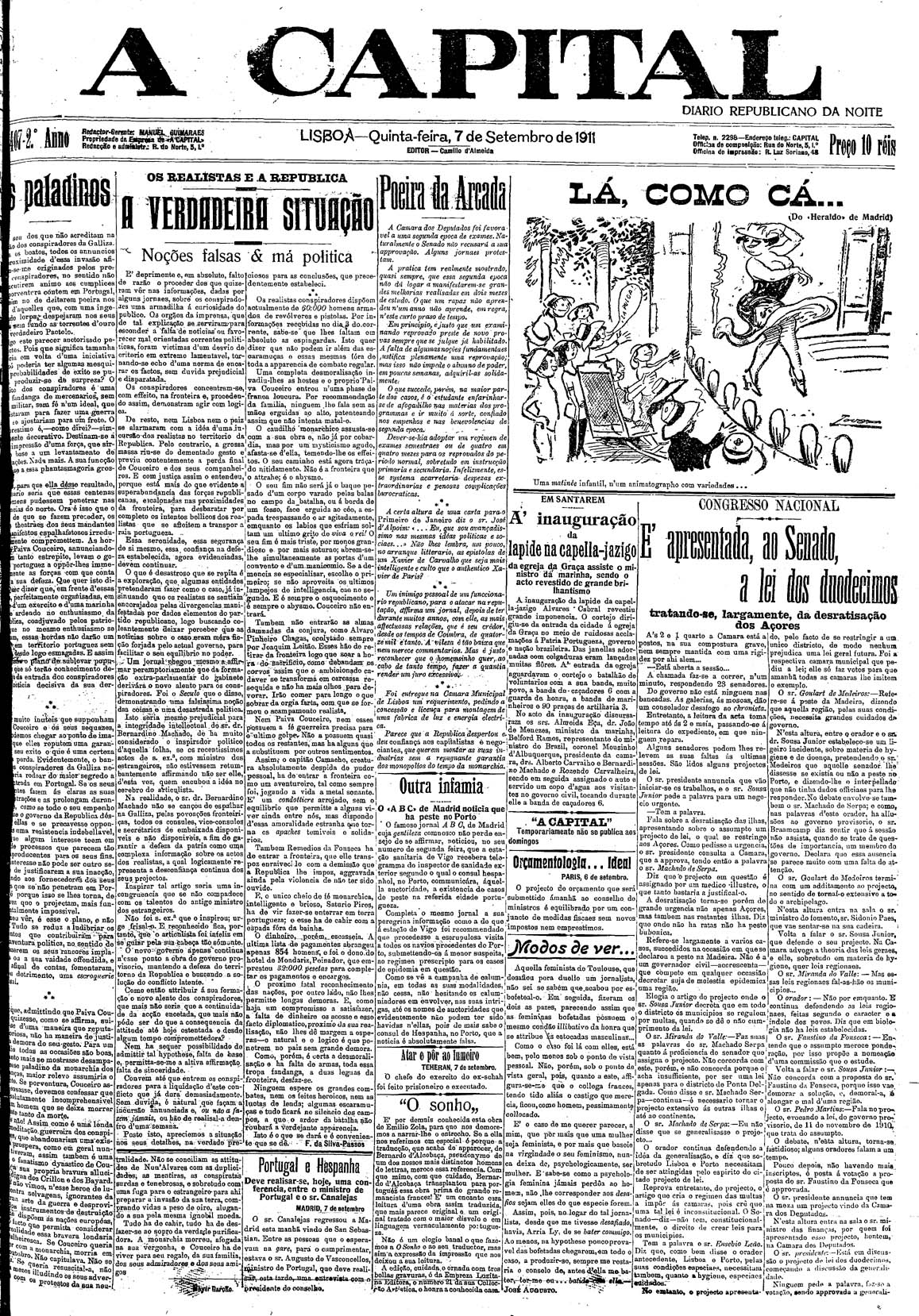 A Capital : diario republicano da noite Setembro de 1911, n.º 402 a n.º 427 | Setembro de 1911, n.º 402 a n.º 427 > N.º 407 (7 Set.) > 0001 |