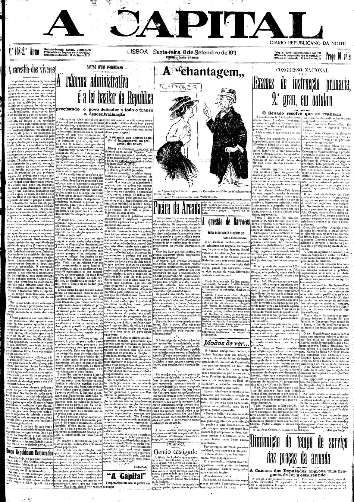 A Capital : diario republicano da noite Setembro de 1911, n.º 402 a n.º 427 | Setembro de 1911, n.º 402 a n.º 427 > N.º 408 (8 Set.) > 0001 |
