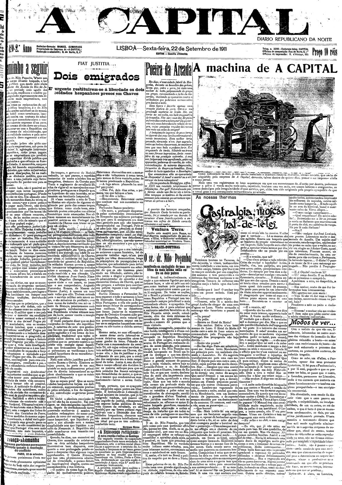 A Capital : diario republicano da noite Setembro de 1911, n.º 402 a n.º 427 | Setembro de 1911, n.º 402 a n.º 427 > N.º 420 (22 Set.) > 0001 |