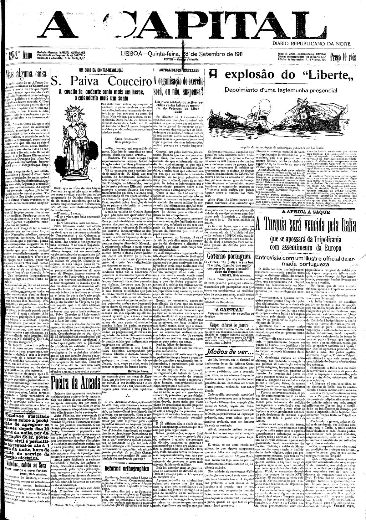 A Capital : diario republicano da noite Setembro de 1911, n.º 402 a n.º 427 | Setembro de 1911, n.º 402 a n.º 427 > N.º 425 (28 Set.) > 0001 |