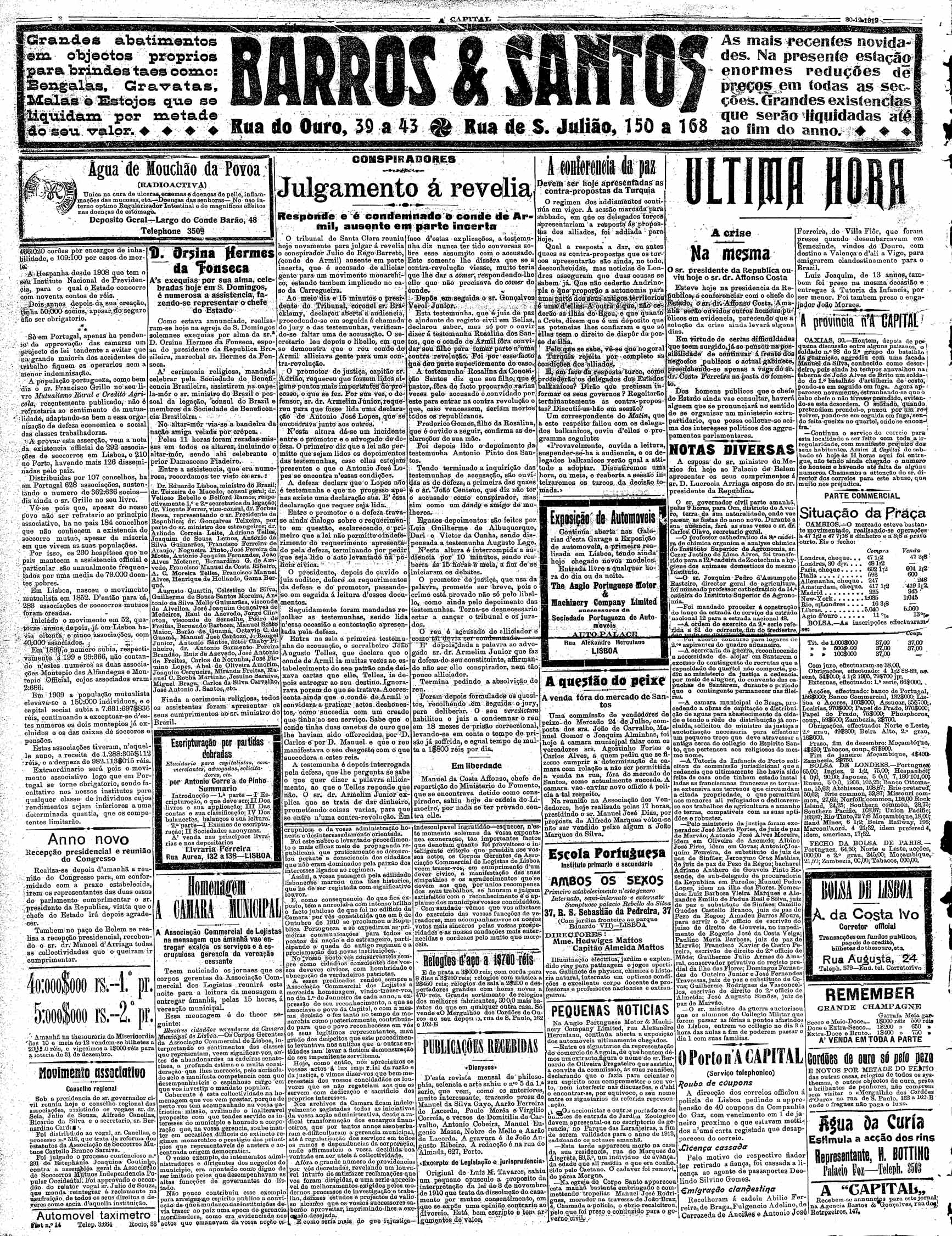 A Capital : diario republicano da noite Dezembro de 1912, n.º 843 a n.º 871 | Dezembro de 1912, n.º 843 a n.º 871 > N.º 870 (30 Dez.) > 0002 |