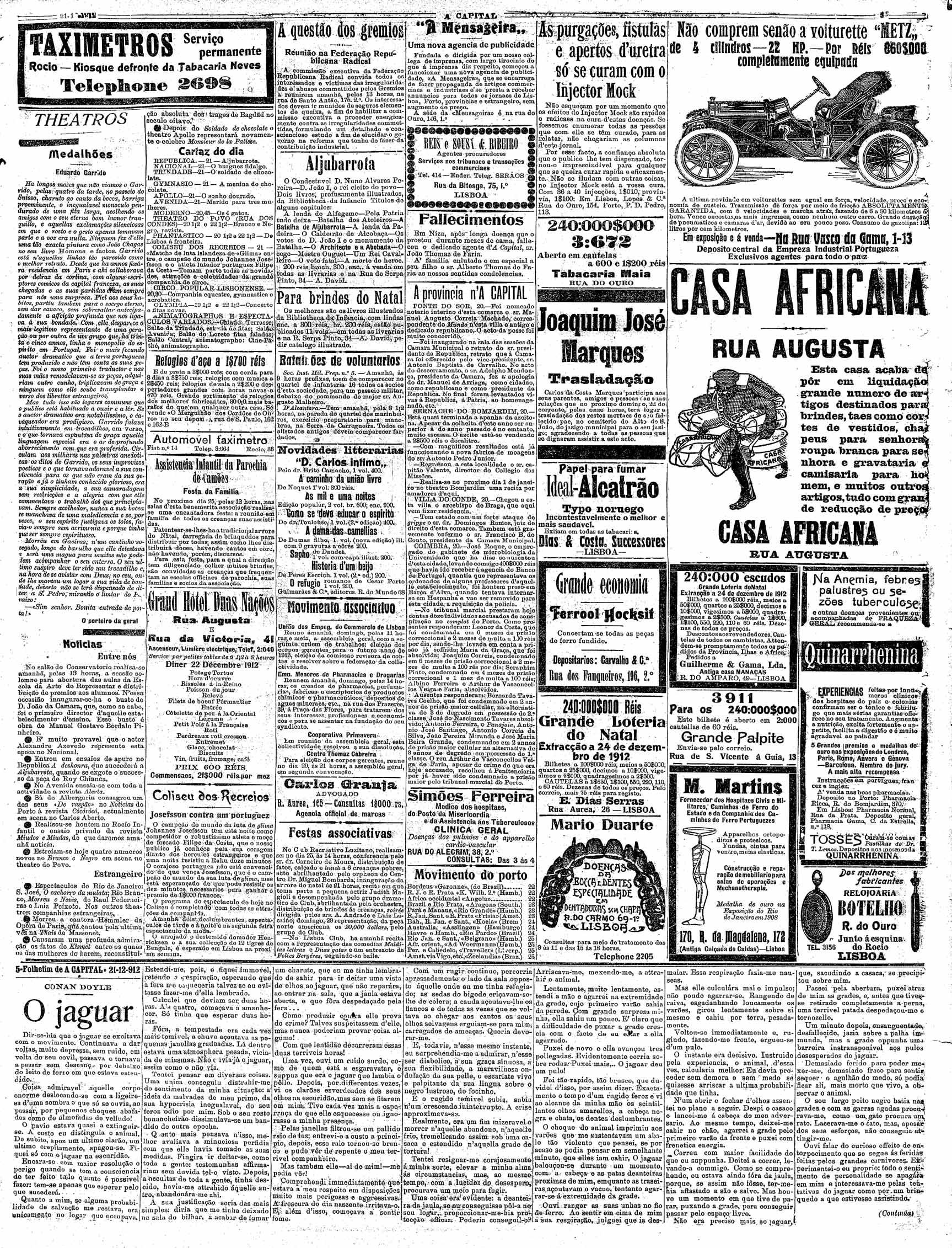 A Capital : diario republicano da noite Dezembro de 1912, n.º 843 a n.º 871 | Dezembro de 1912, n.º 843 a n.º 871 > N.º 862 (21 Dez.) > 0003 |