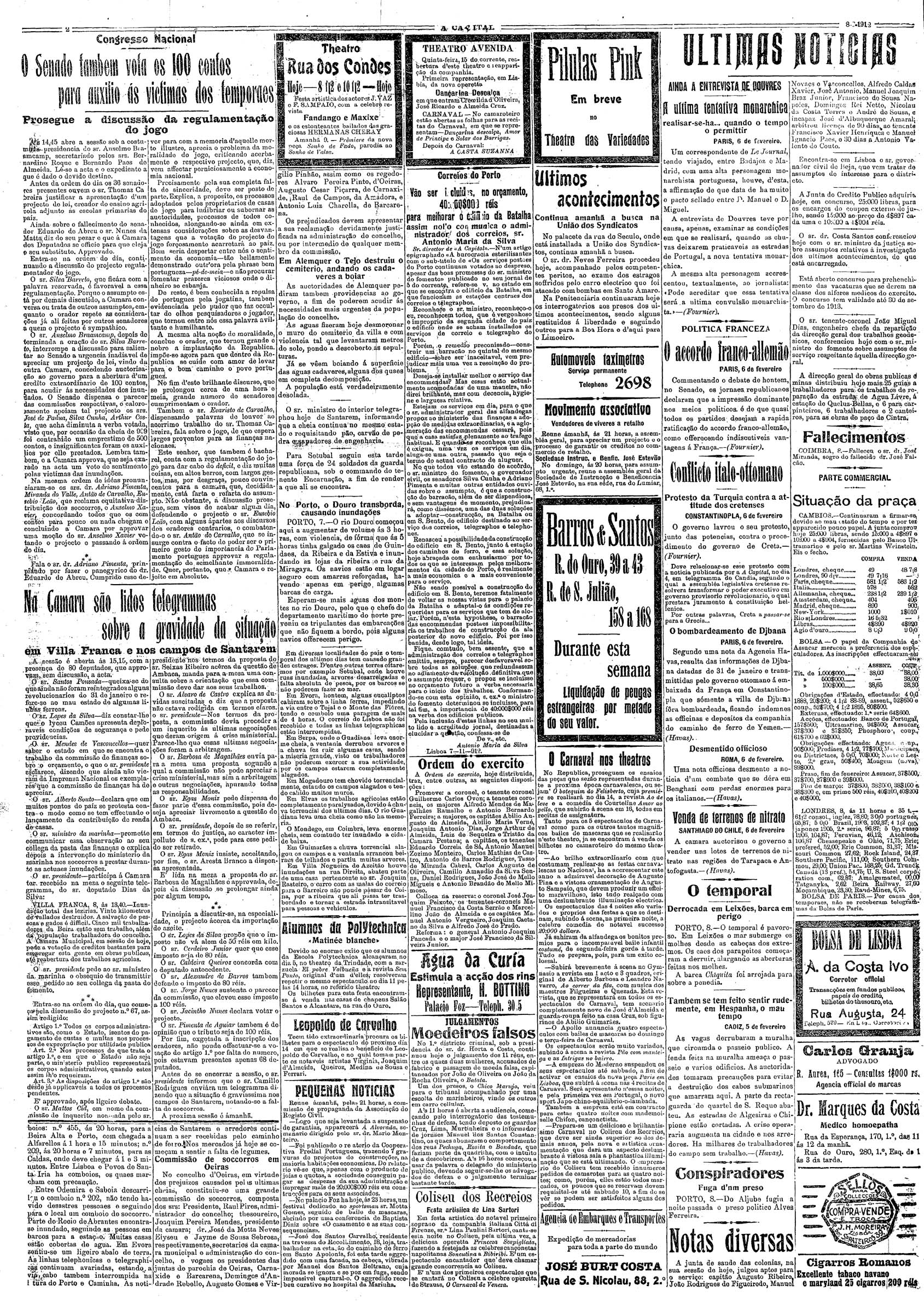 A Capital : diario republicano da noite Fevereiro de 1912, n.º 541 a n.º 568 | Fevereiro de 1912, n.º 541 a n.º 568 > N.º 548 (8 Fev.) > 0002 |
