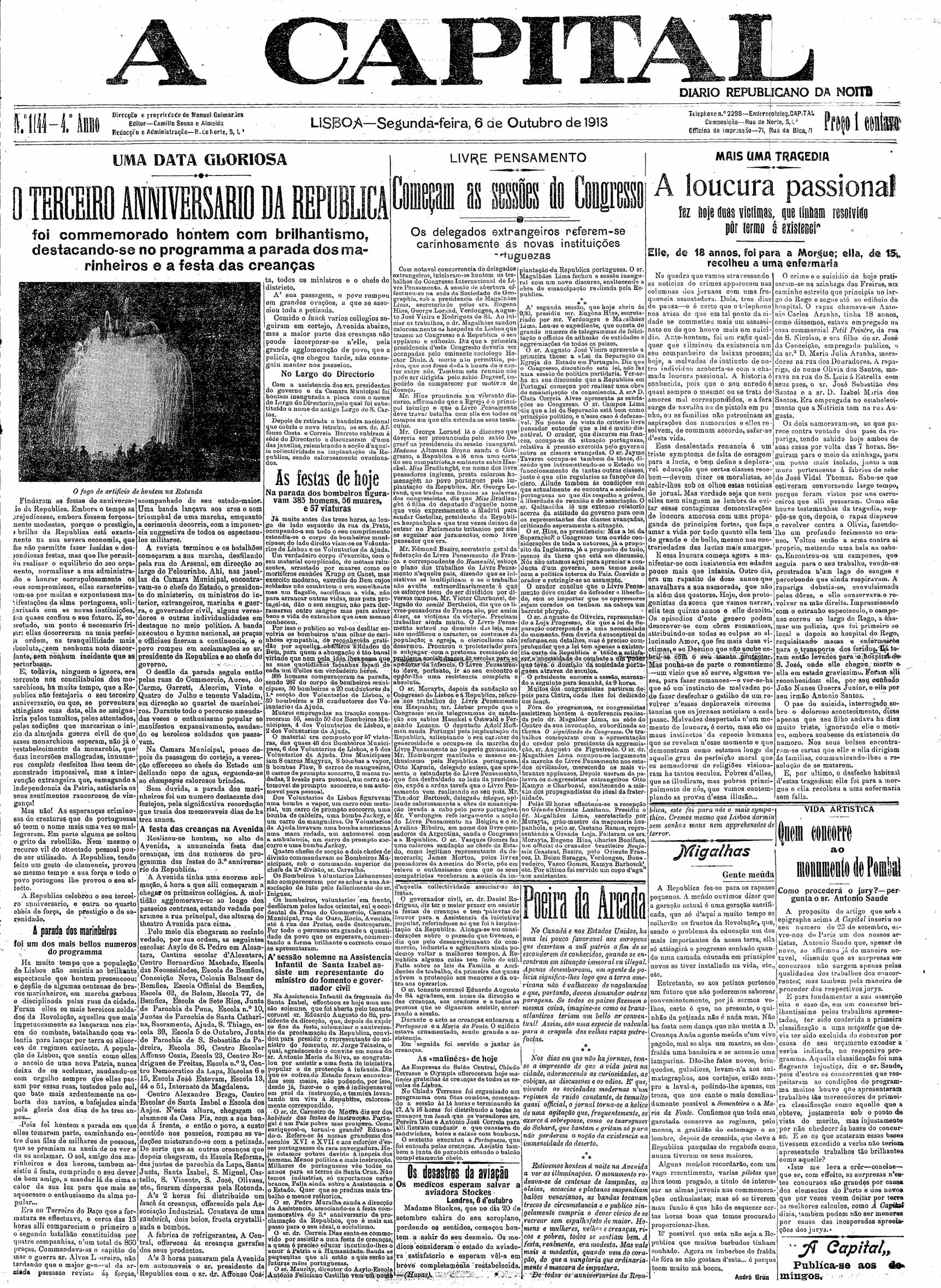 A Capital : diario republicano da noite Outubro de 1913, n.º 1140 a n.º 1169 | Outubro de 1913, n.º 1140 a n.º 1169 > N.º 1144 (6 Out.) > 0001 |