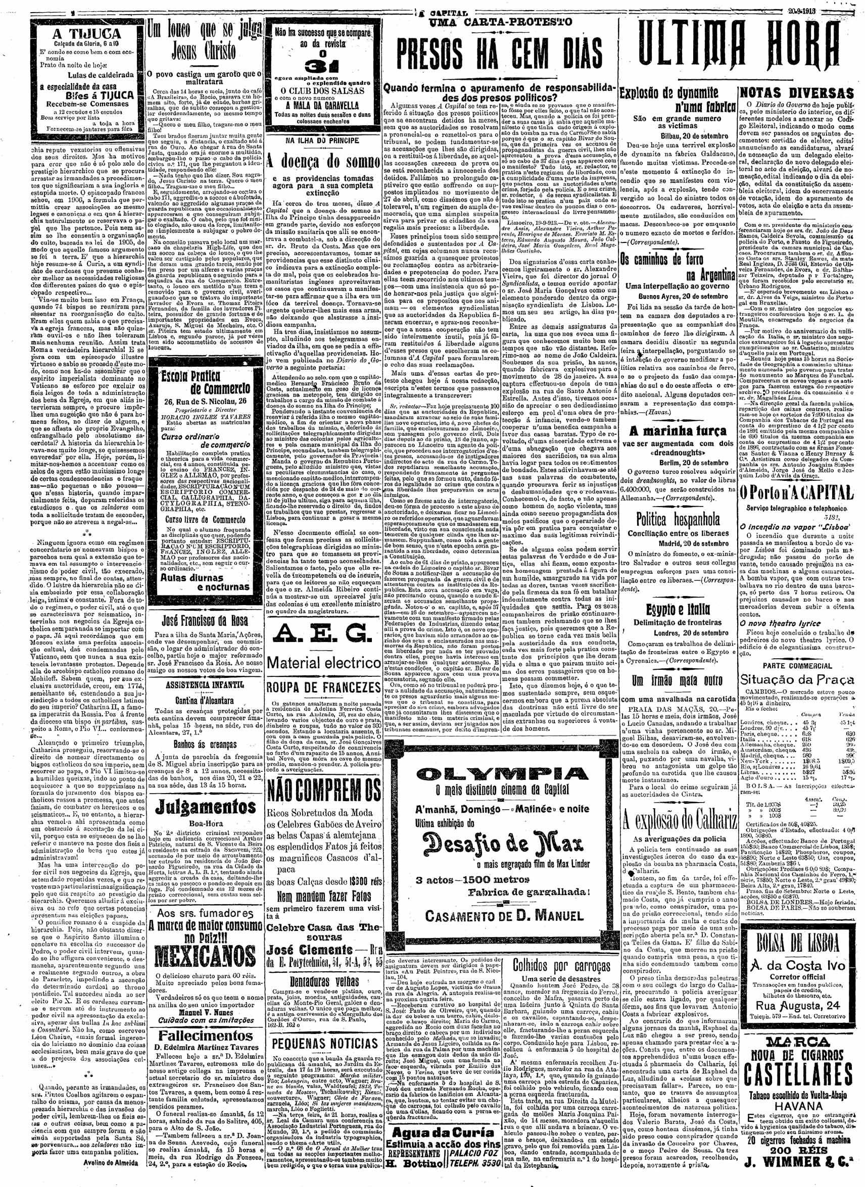 A Capital : diario republicano da noite Setembro de 1913, n.º 1110 a n.º 1139 | Setembro de 1913, n.º 1110 a n.º 1139 > N.º 1129 (20 Set.) > 0002 |