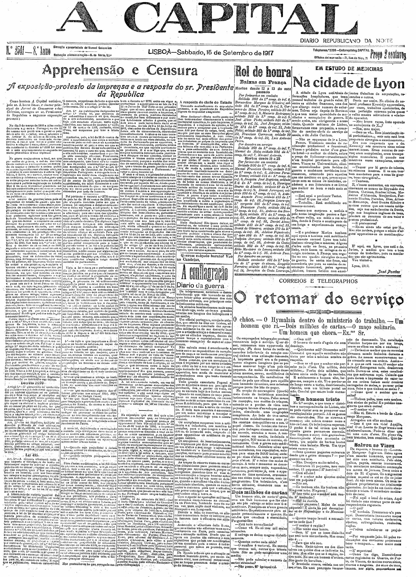 A Capital : diario republicano da noite Setembro de 1917, n.º 2531 a n.º 2556 | Setembro de 1917, n.º 2531 a n.º 2556 > N.º 2541 (15 Set.) > 0001 |