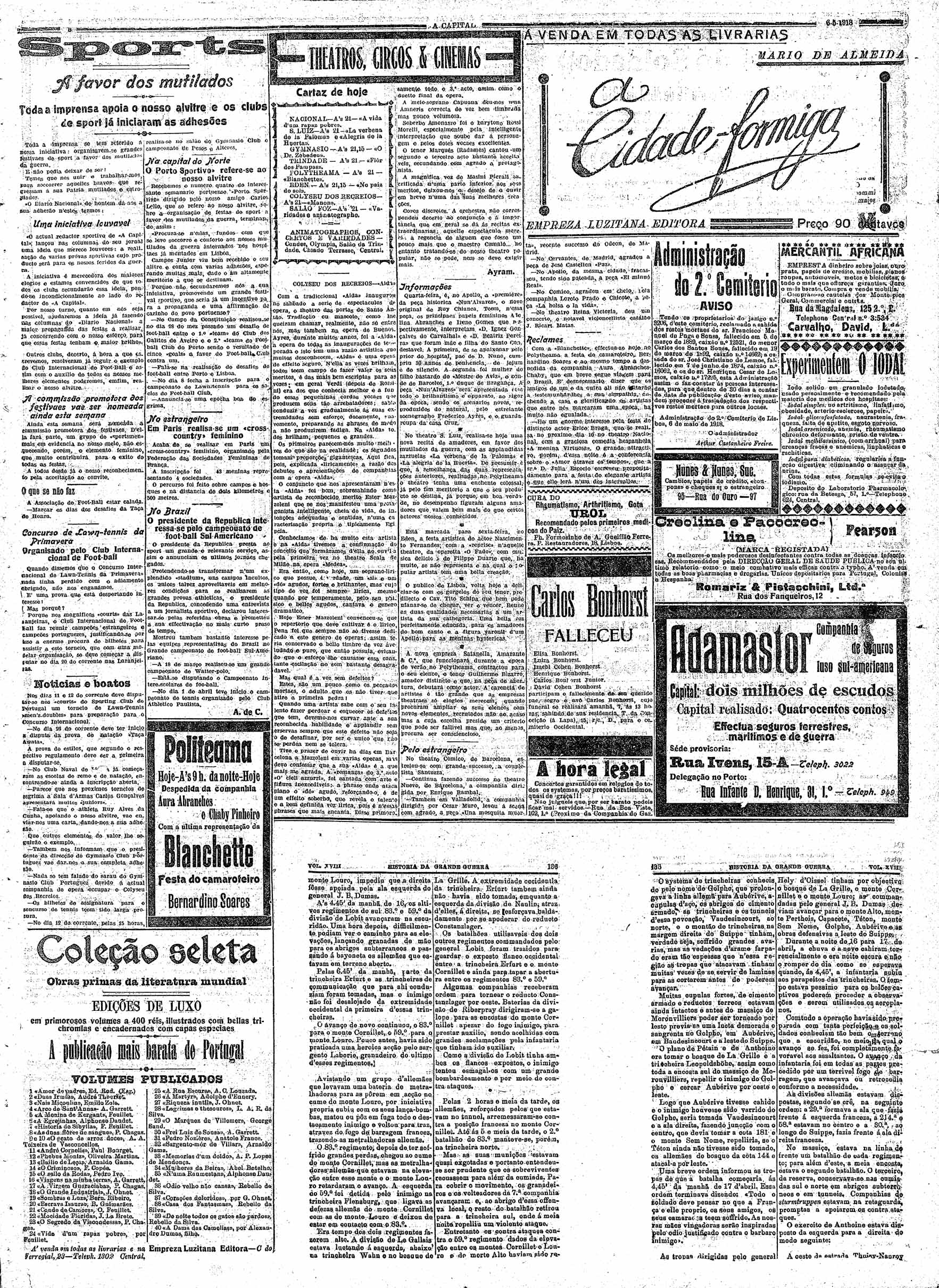 A Capital : diario republicano da noite Maio de 1918, n.º 2762 a n.º 2792 | Maio de 1918, n.º 2762 a n.º 2792 > N.º 2767 (6 Maio) > 0003 |