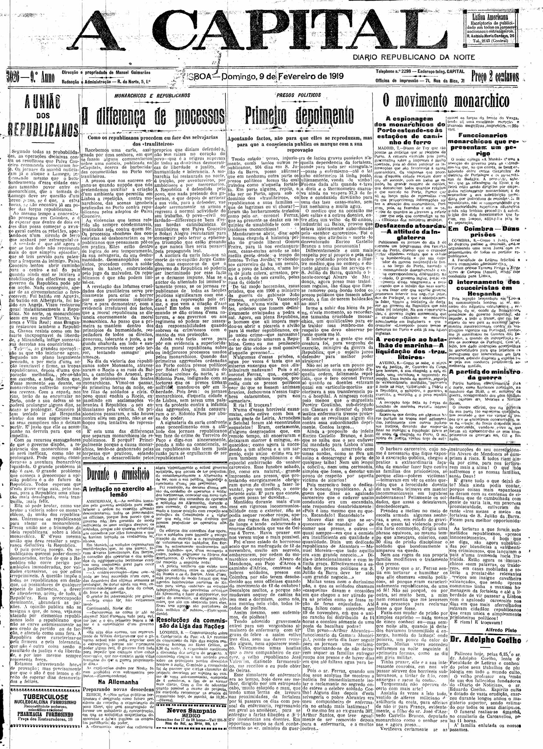 A Capital : diario republicano da noite Fevereiro de 1919, n.º 3018 a n.º 3045 | Fevereiro de 1919, n.º 3018 a n.º 3045 > N.º 3026 (9 Fev.) > 0001 |
