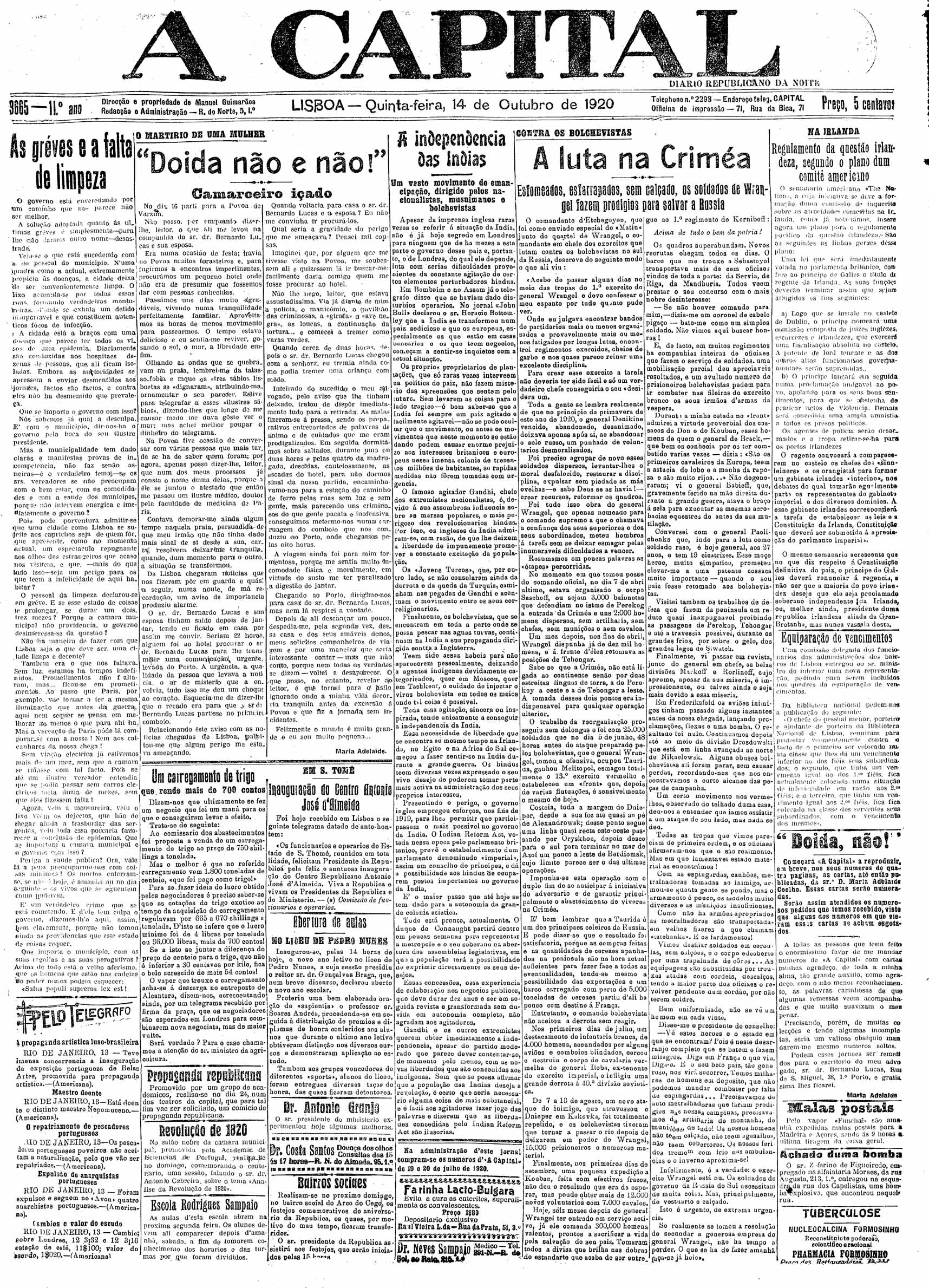 A Capital : diario republicano da noite Outubro de 1920, n.º 3653 a n.º 3682 | Outubro de 1920, n.º 3653 a n.º 3682 > N.º 3665 (14 Out.) > 0001 |