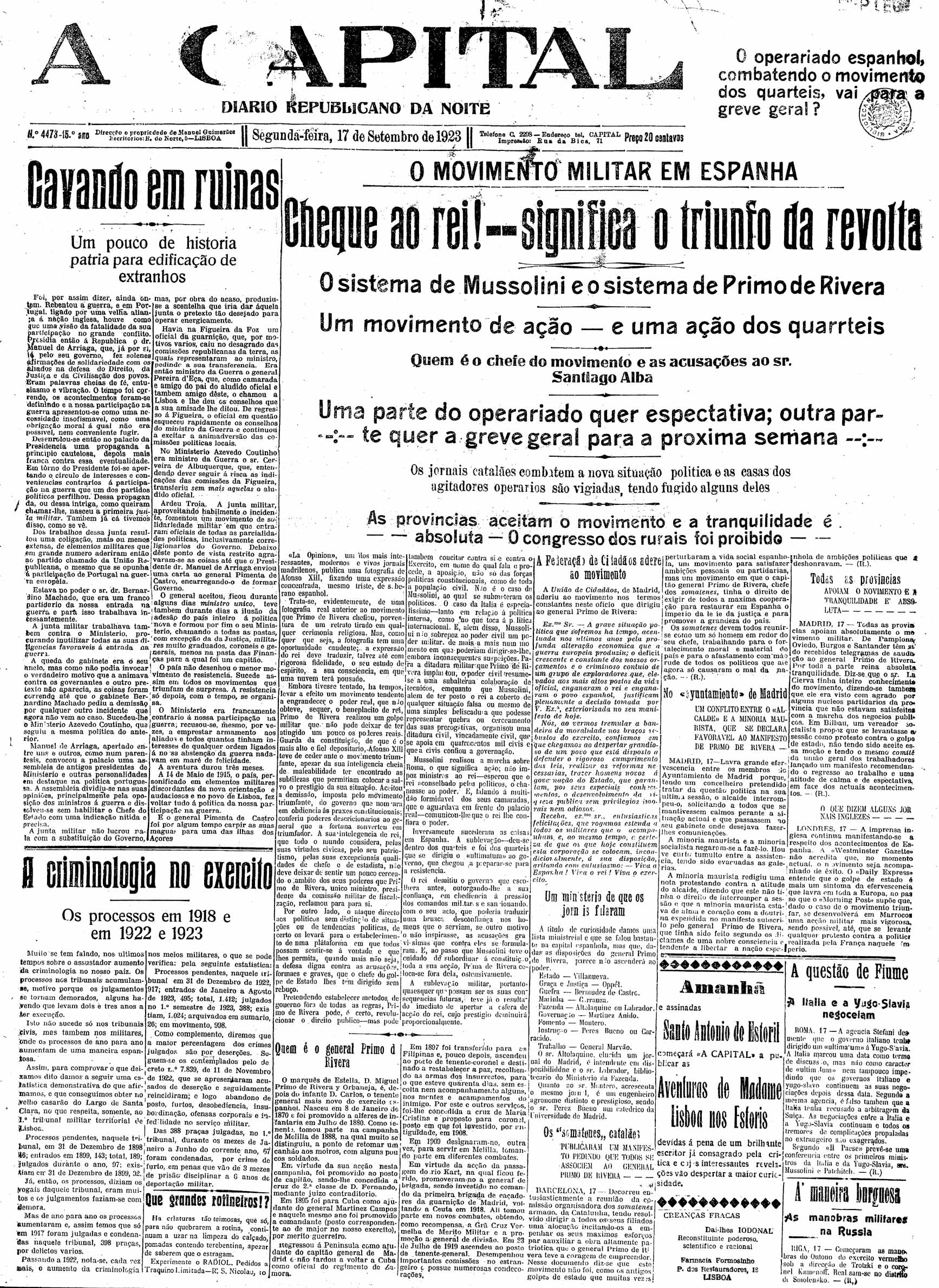 A Capital : diario republicano da noite Setembro de 1923, n.º 4480 a n.º 4484 (sic) | Setembro de 1923, n.º 4480 a n.º 4484 (sic) > N.º 4473 (17 Set.) > 0001 |