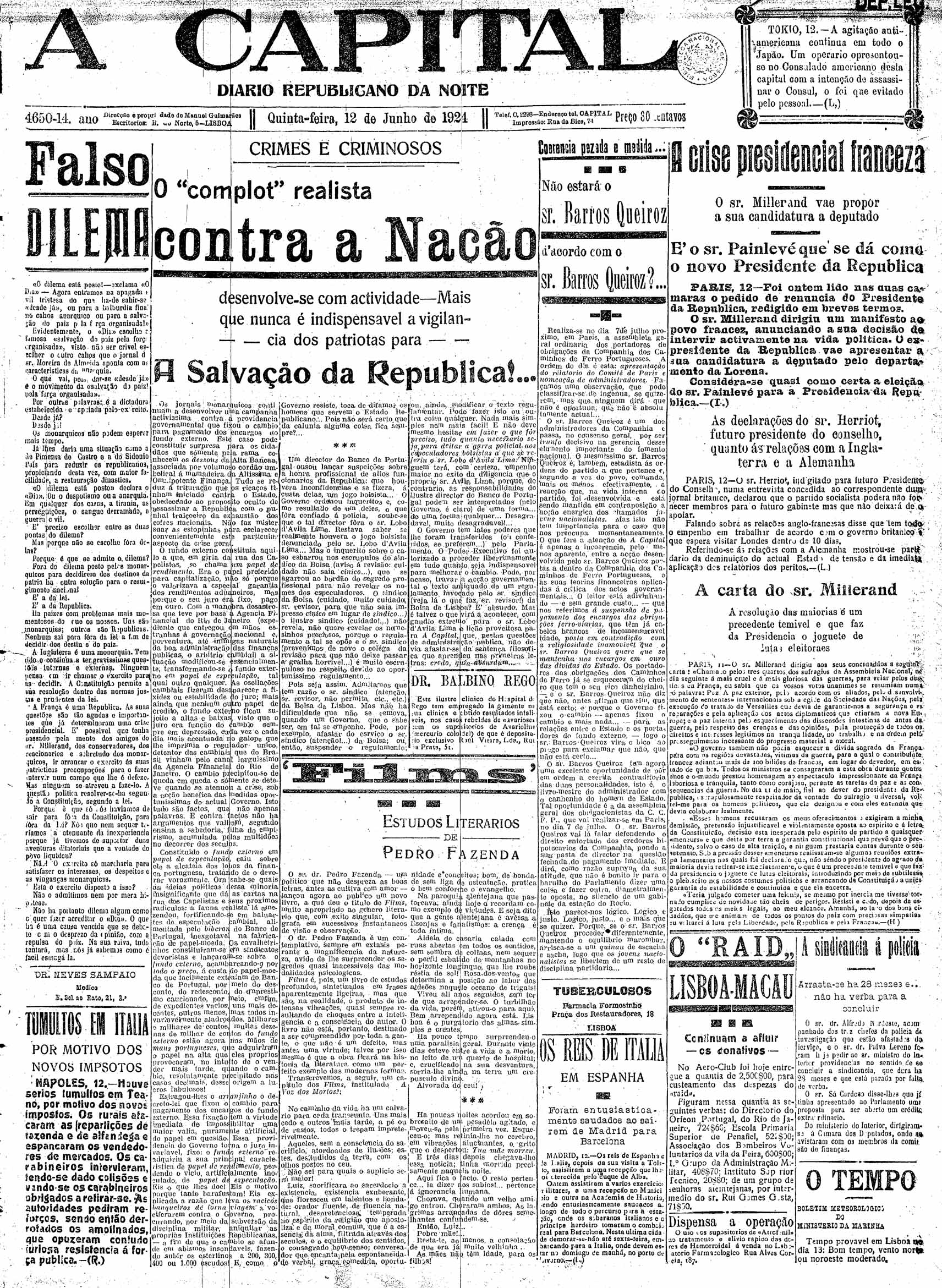 A Capital : diario republicano da noite Junho de 1924, n.º 4641 a n.º 4665 | Junho de 1924, n.º 4641 a n.º 4665 > N.º 4650 (12 Jun.) > 0001 |