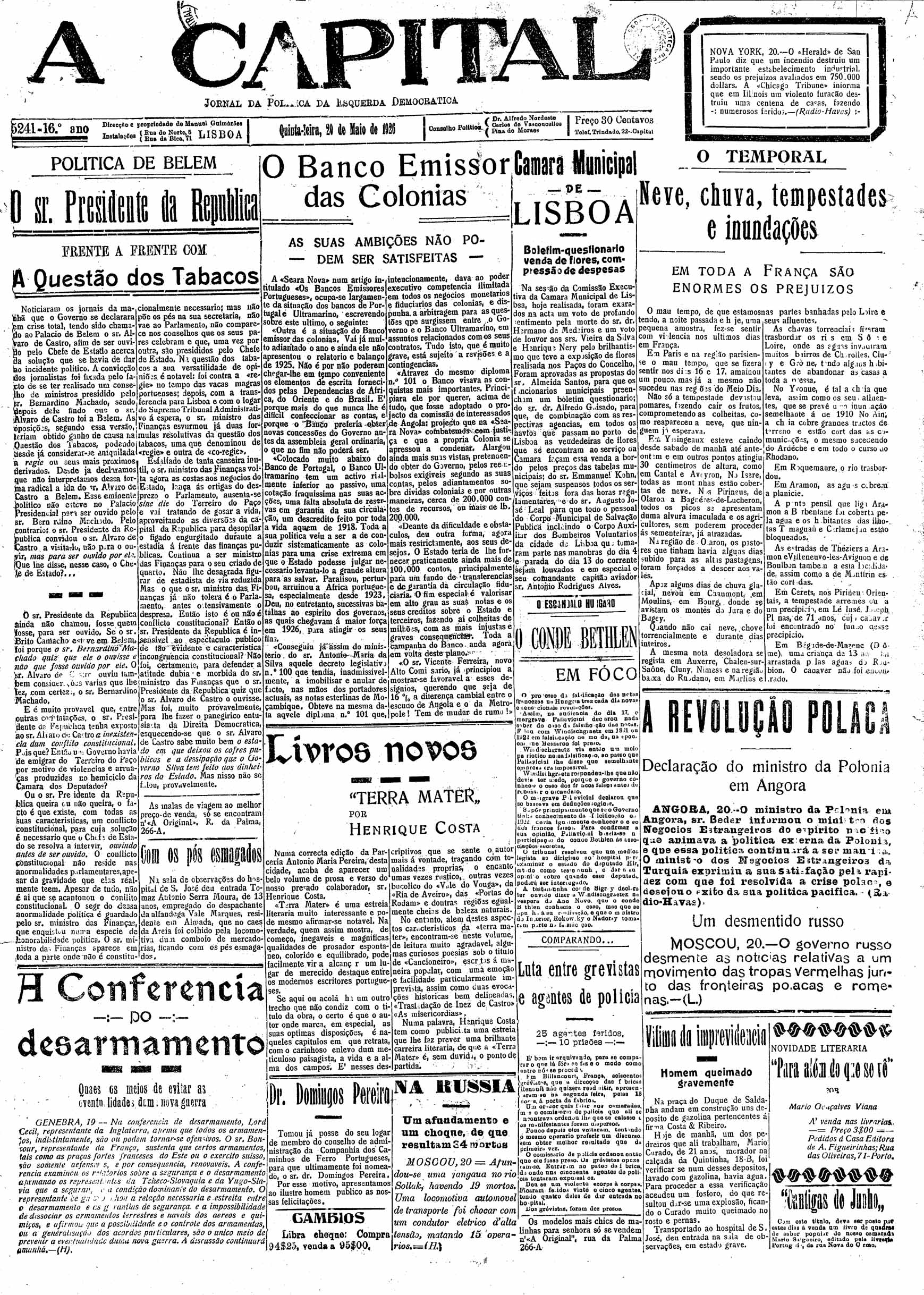 A Capital : diario republicano da noite Maio de 1926, n.º 5226 a n.º 5250 | Maio de 1926, n.º 5226 a n.º 5250 > N.º 5241 [20 Maio] > 0001 |