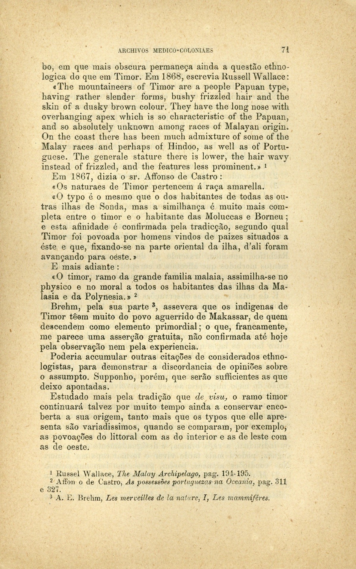 Archivos medico-coloniaes Numero Programma, Março, 1889 capa verso rosto Serviço de saude na Secretaria dos Negocios da Marinha e Ultramar Trabalhos que os facultativos do ultramar devem remetter para a secretaria de estado dos negocios de marinha e ultramar, segundo as disposições do decreto de 2 de dezembro de 1869 Principios fundamentaes, a que se deve attender no estudo dos climas, da emigração e da aclimação nas nossas possessões d'além-mar As grandes luctas da sciencia e da natureza nas terras da África Central Conclusões - sobre a aclimação - approvadas pelo congresso de hygiene e de demographia em Vienna d'Áustria Conclusões - sobre a mal'aria - approvadas pelo congresso de hygiene e de demographia em Vienna d'Áustria; Determinação da área geographica habitada por toda a familia portugueza nos fins do seculo XIX A anthropometria colonial Anthropometria militar A anthropometria policial Classificação geral das possessões portuguezas sob o ponto de vista da imigração e das relações dos indigenas com os europeus Hospital Maria Pia : Nota dos facultativos, sua graduação e concelhos onde se acham em commissão Relatorio do serviço de saude da provincia de Macau e Timor em relação ao anno de 1886, por José Gomes da Silva Caracter pratico e experimental dos trabalhos medico-coloniaes que se devem apresentar Necessidades do serviço de saude em cada uma das nossas provincias do ultramar Reforma da estatistica medica dos hospitaes do ultramar Material scientifico que mais importa obter para se resolverem as principaes questões medico-coloniaes Publicações feitas nas differentes provincias do ultramar; Aos medicos da armada real portugueza Merecidas distincções verso Summario | Numero Programma, Março, 1889 > Relatorio do serviço de saude da provincia de Macau e Timor em relação ao anno de 1886, por José Gomes da Silva > 0071 |