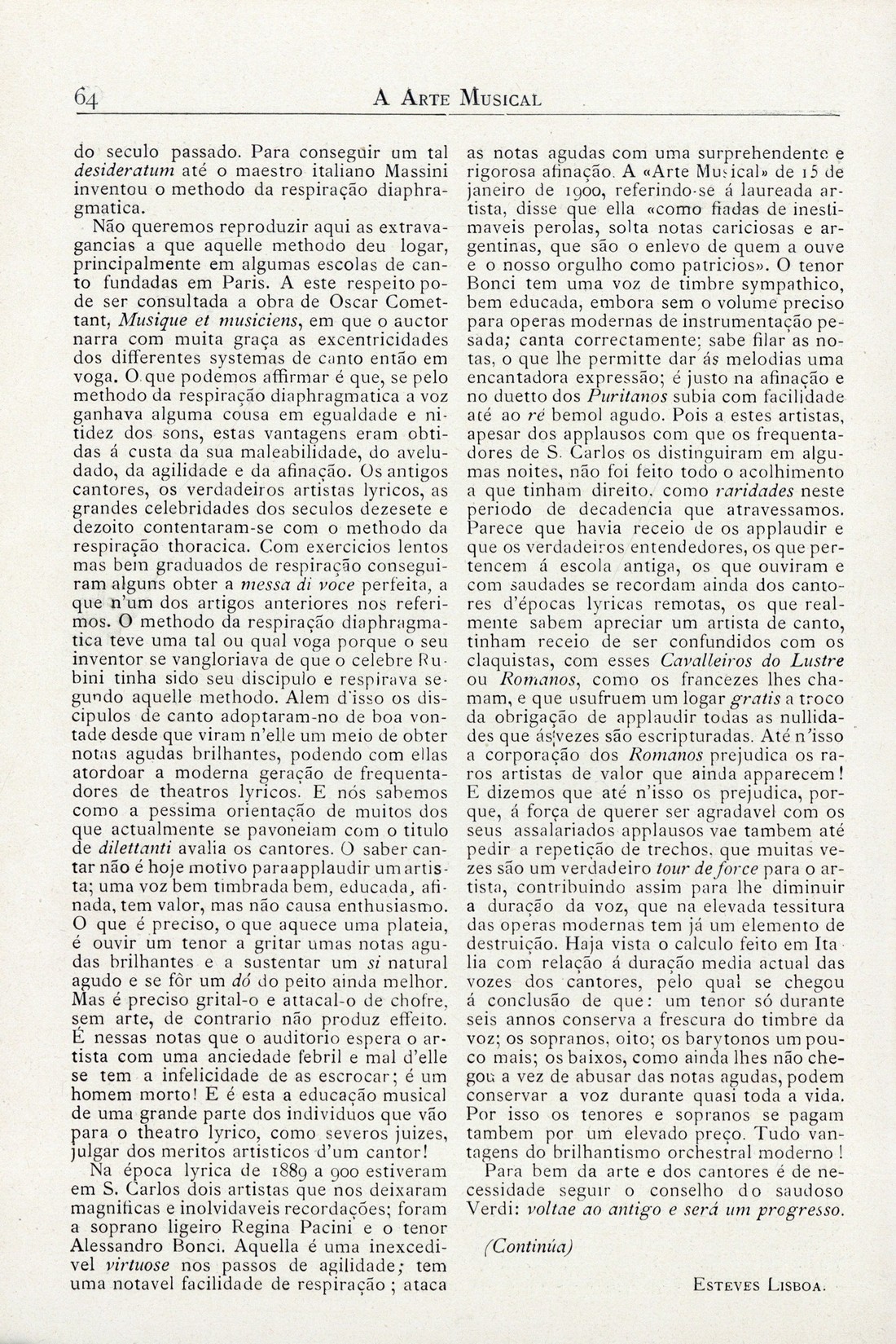 A arte musical : revista publicada quinzenalmente Ano 3, N.º 54, 31 de Março de 1901 Elias de Lemos, por Sousa Viterbo Theatro de S. Carlos, por Esteves Lisboa Galeria dos nossos : D. Guilhermina Suggia, por Manoel Ramos ; Notas soltas ; Noticiário Bibliographia ; Necrologia | Ano 3, N.º 54, 31 de Março de 1901 > Cantores antigos e modernos (cont.), por Esteves Lisboa > 0064 |