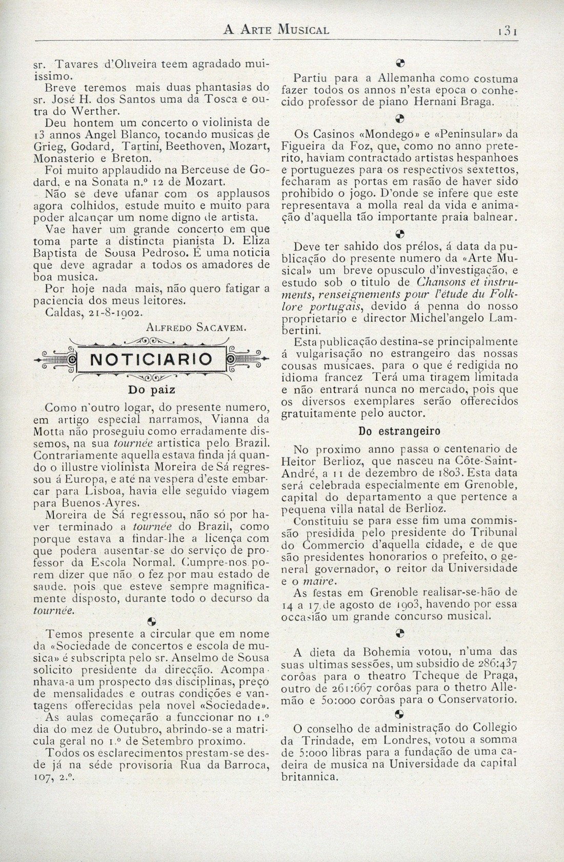 A arte musical : revista publicada quinzenalmente Ano 4, N.º 88, 31 de Agosto de 1902 | Ano 4, N.º 88, 31 de Agosto de 1902 > Noticiário > 0131 |