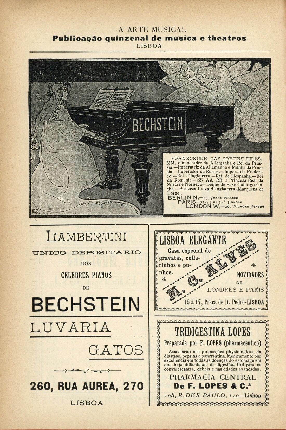A arte musical : revista publicada quinzenalmente Ano 5, N.º 111, 15 de Agosto de 1903 capa verso publicidade publicidade Cantoras célebres : Rosina Stolz, por Lothario Necrologia publicidade publicidade verso contracapa | Ano 5, N.º 111, 15 de Agosto de 1903 > publicidade |