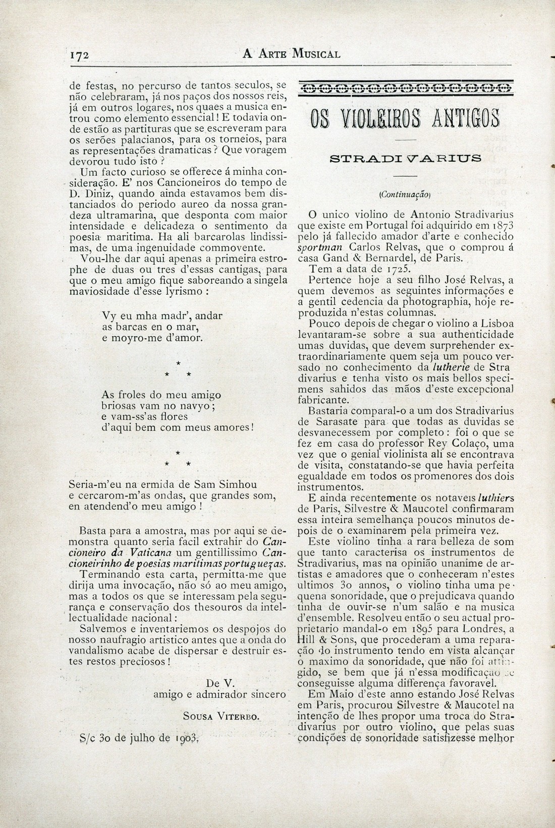 A arte musical : revista publicada quinzenalmente Ano 5, N.º 111, 15 de Agosto de 1903 capa verso publicidade publicidade Cantoras célebres : Rosina Stolz, por Lothario Necrologia publicidade publicidade verso contracapa | Ano 5, N.º 111, 15 de Agosto de 1903 > Os violeiros antigos (cont.) : Stradivarius; Guarnerius, por L. > 0172 |