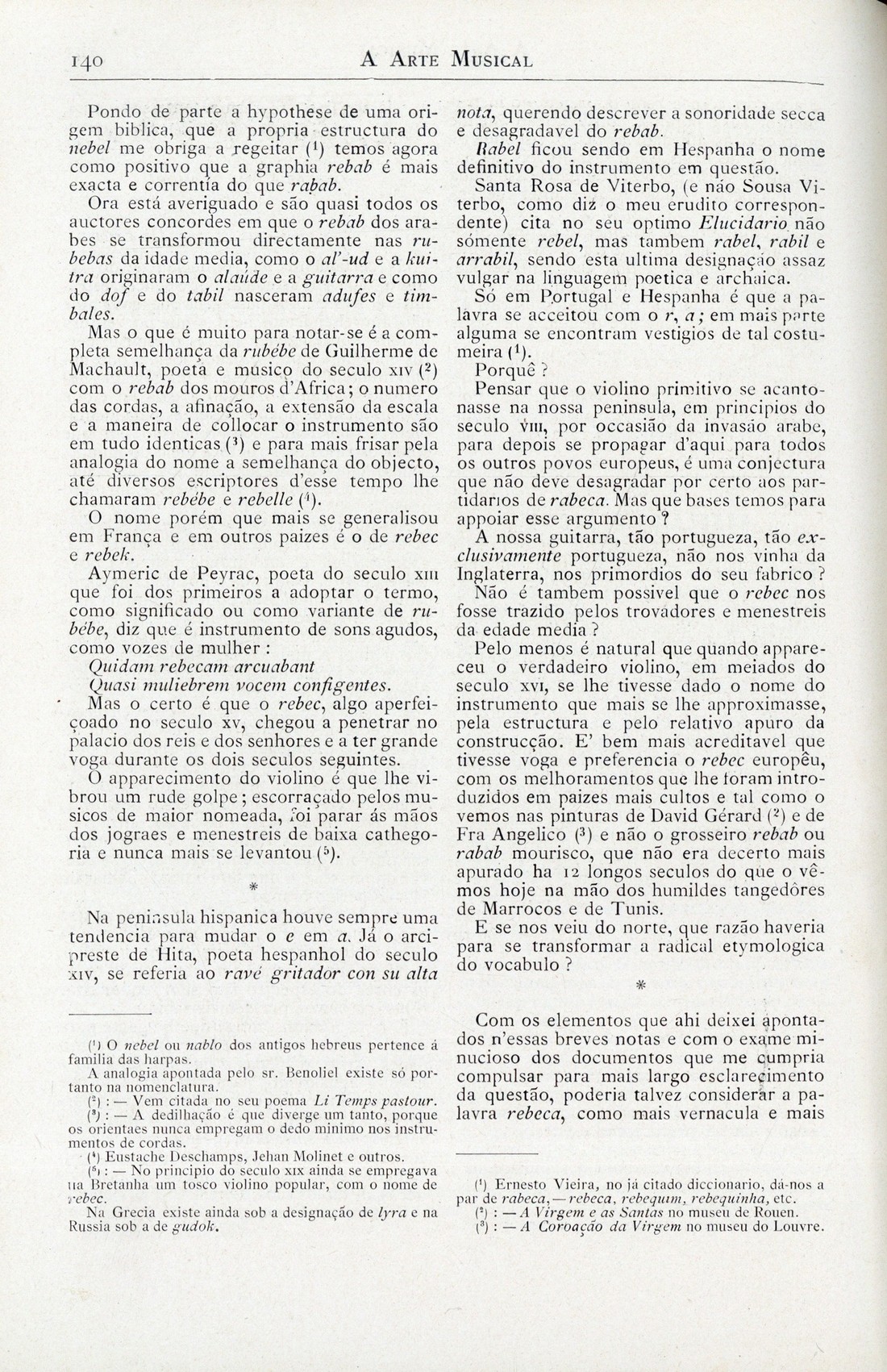 A arte musical : revista publicada quinzenalmente Ano 7, N.º 155, 15 de Junho de 1905 capa verso publicidade publicidade Notas vagas : cartas a uma Senhora, por Affonso Vargas Uma carta de Vianna da Motta Bibliographia Necrologia publicidade publicidade verso contracapa | Ano 7, N.º 155, 15 de Junho de 1905 > Rbeca ou rebeca?, por Lambertini > 0140 |