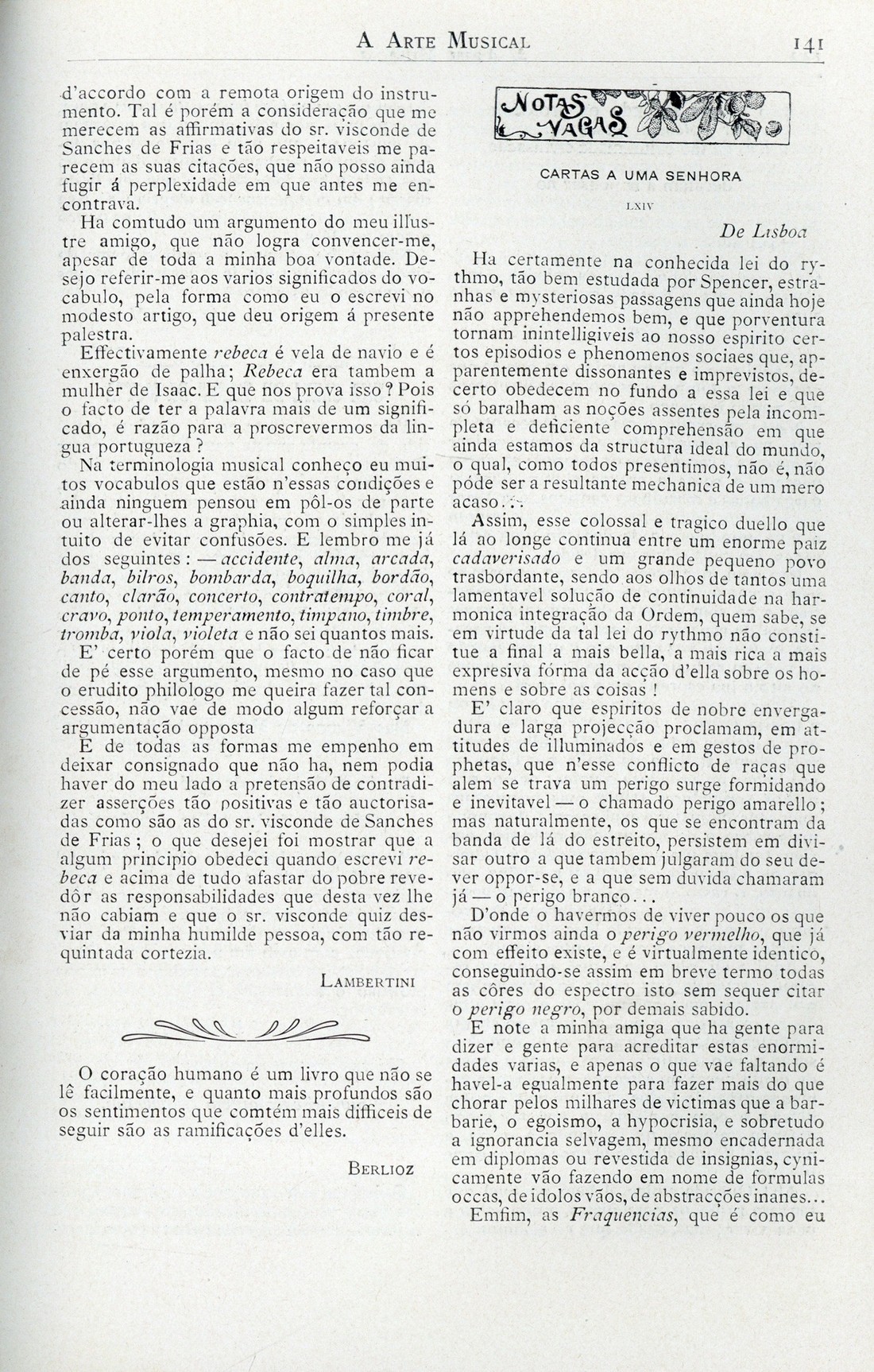 A arte musical : revista publicada quinzenalmente Ano 7, N.º 155, 15 de Junho de 1905 capa verso publicidade publicidade Notas vagas : cartas a uma Senhora, por Affonso Vargas Uma carta de Vianna da Motta Bibliographia Necrologia publicidade publicidade verso contracapa | Ano 7, N.º 155, 15 de Junho de 1905 > Notas vagas : cartas a uma Senhora, por Affonso Vargas > 0141 |