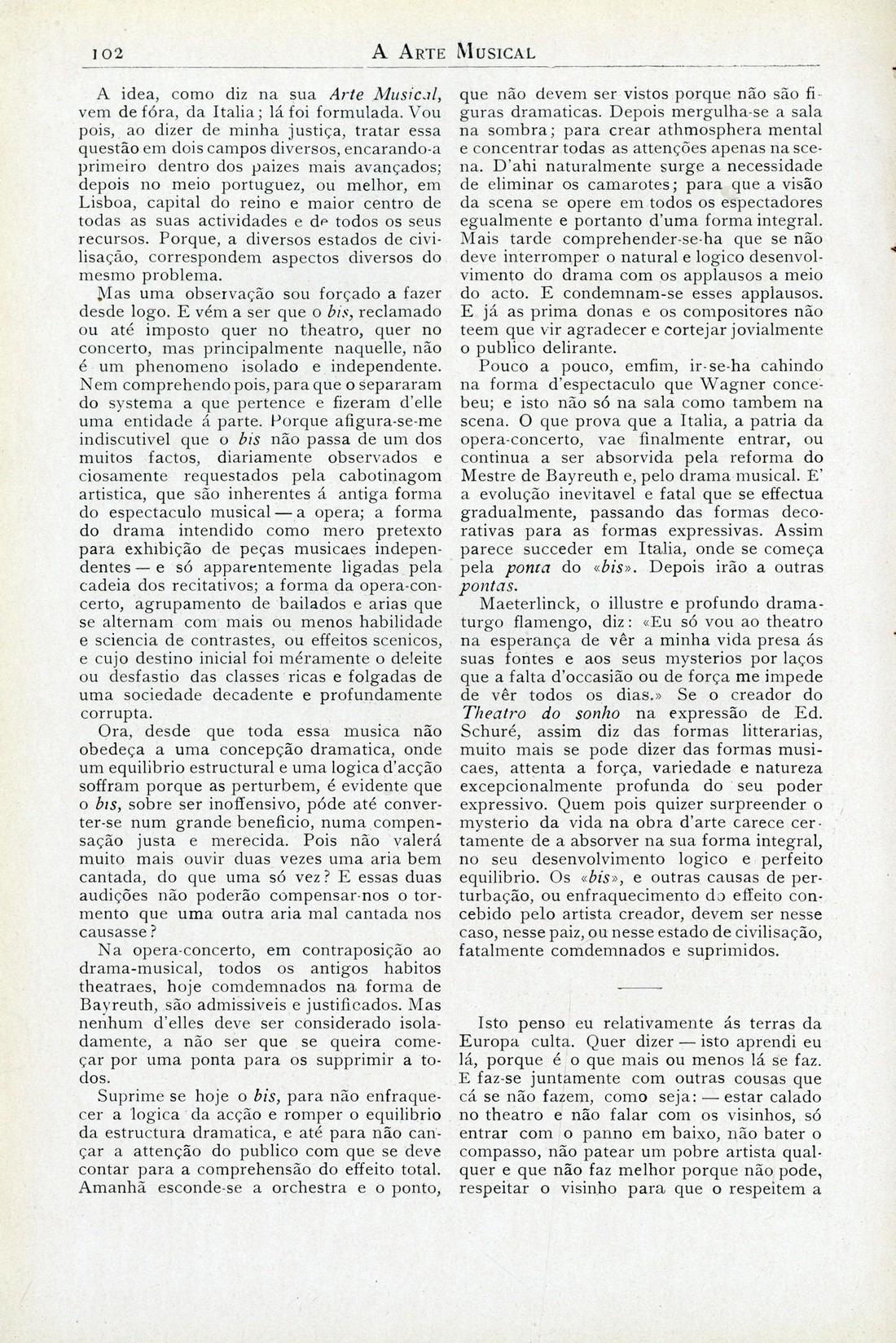 A arte musical : revista publicada quinzenalmente Ano 9, N.º 201, 30 de Abril de 1907 capa verso publicidade publicidade José Malhoa : o Zé-Pereira, por Guido Vianna da Motta publicidade publicidade verso contracapa | Ano 9, N.º 201, 30 de Abril de 1907 > O "Bis" > 0102 |