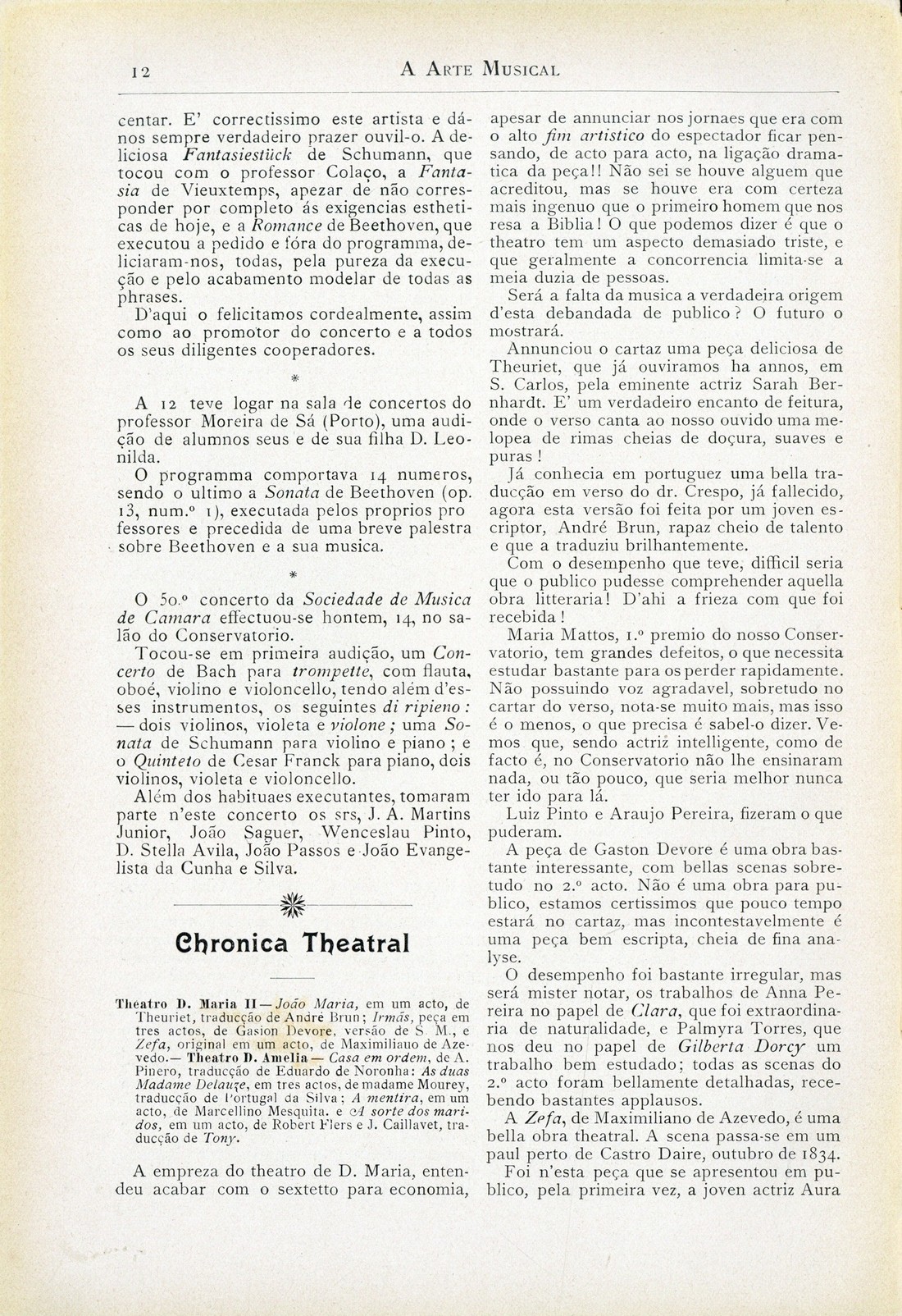 A arte musical : revista publicada quinzenalmente Ano 10, N.º 218, 15 de Janeiro de 1908 capa verso Van Ostrade (1610-1685) : Le violon hollandais, por Guido O Jubileu de Francisco Andrade Joseph Joachim (cont.), por Carlos de Mello Uma excursão a Bayreuth Concertos Necrologia verso contracapa | Ano 10, N.º 218, 15 de Janeiro de 1908 > Chronica theatral, por Alfredo Pinto (Sacavém) > 0012 |