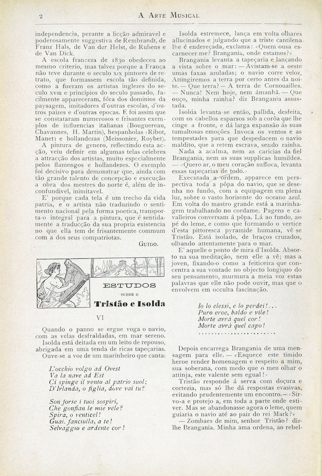 A arte musical : revista publicada quinzenalmente Ano 10, N.º 218, 15 de Janeiro de 1908 capa verso Van Ostrade (1610-1685) : Le violon hollandais, por Guido O Jubileu de Francisco Andrade Joseph Joachim (cont.), por Carlos de Mello Uma excursão a Bayreuth Concertos Necrologia verso contracapa | Ano 10, N.º 218, 15 de Janeiro de 1908 > Estudos sobre o Tristão e Isolda (cont.) > 0002 |