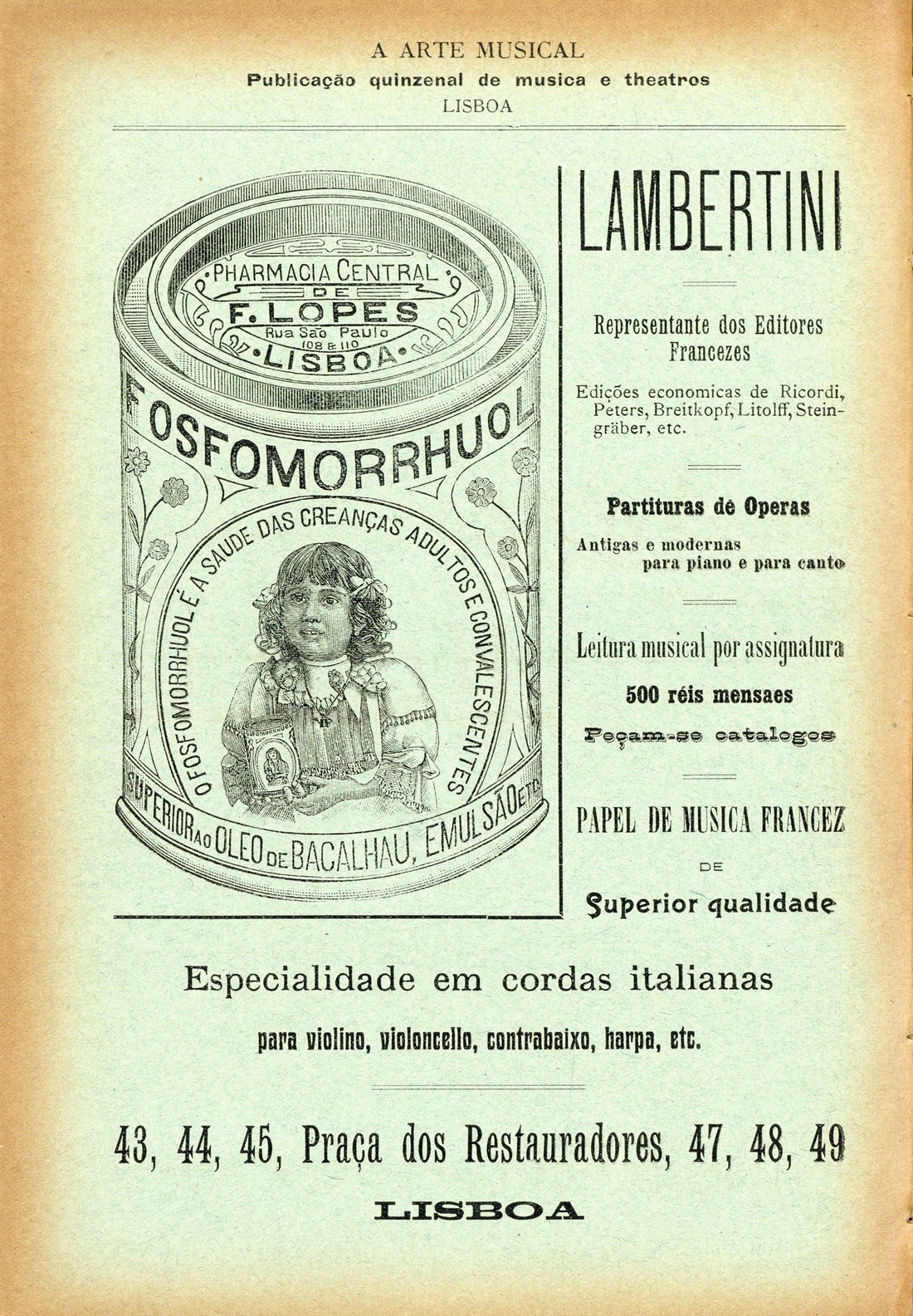 A arte musical : revista publicada quinzenalmente Ano 10, N.º 239, 30 de Novembro de 1908 capa verso publicidade publicidade Santa Cecilia Variedades Theatro de S. Carlos, por Esteves Lisboa Noticiário Necrologia publicidade publicidade verso contracapa | Ano 10, N.º 239, 30 de Novembro de 1908 > verso |