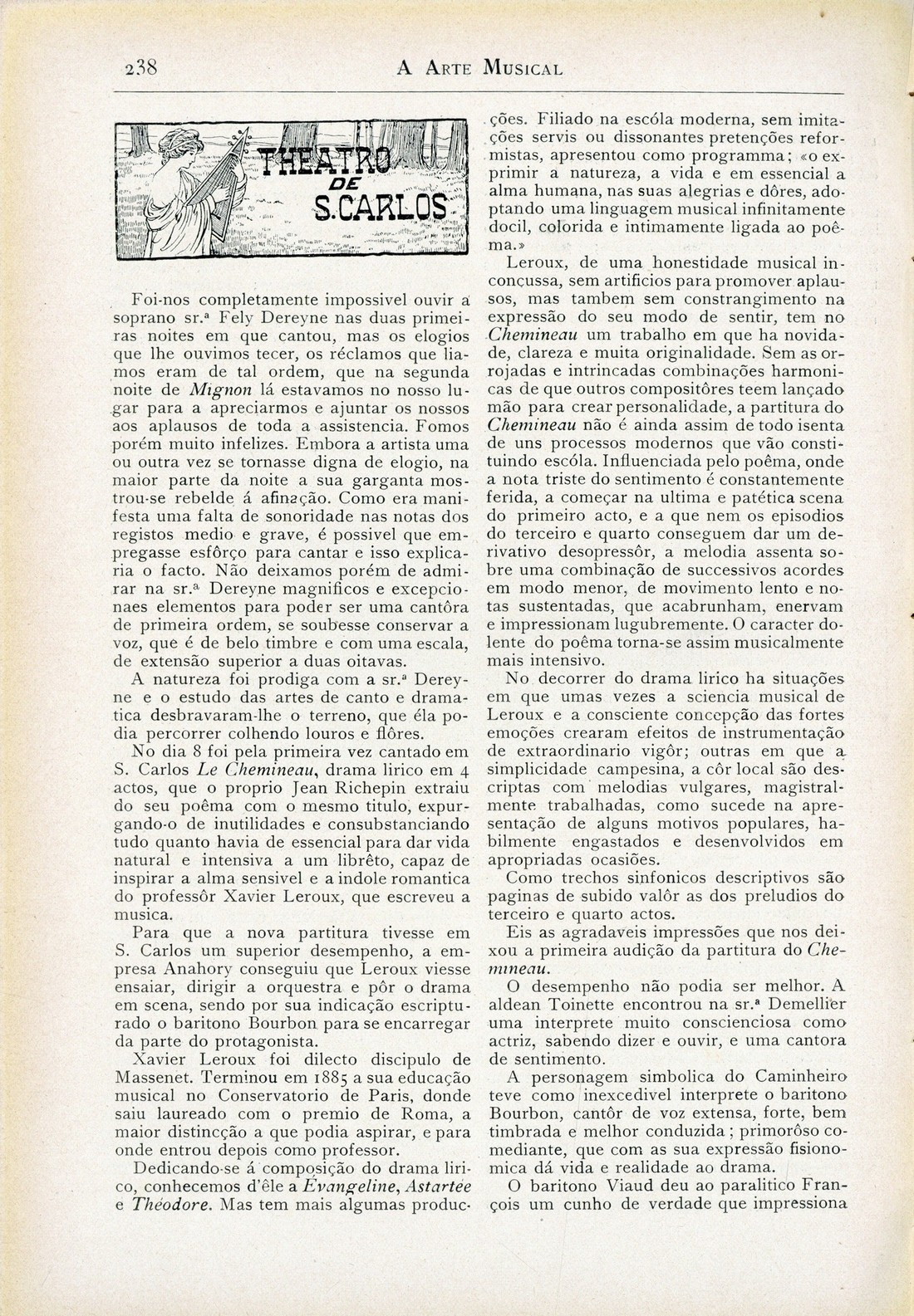 A arte musical : revista publicada quinzenalmente Ano 10, N.º 240, 15 de Dezembro de 1908 capa verso publicidade publicidade Paganini Theatro de S. Carlos, por Esteves Lisboa Notas vagas : cartas a uma Senhora, por Affonso Vargas Noticiário Necrologia publicidade publicidade publicidade verso contracapa | Ano 10, N.º 240, 15 de Dezembro de 1908 > Theatro de S. Carlos, por Esteves Lisboa > 0238 |