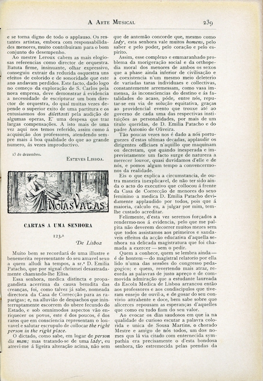 A arte musical : revista publicada quinzenalmente Ano 10, N.º 240, 15 de Dezembro de 1908 capa verso publicidade publicidade Paganini Theatro de S. Carlos, por Esteves Lisboa Notas vagas : cartas a uma Senhora, por Affonso Vargas Noticiário Necrologia publicidade publicidade publicidade verso contracapa | Ano 10, N.º 240, 15 de Dezembro de 1908 > Notas vagas : cartas a uma Senhora, por Affonso Vargas > 0239 |